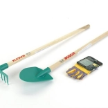 - Complete uitrusting – schep 89 cm, hark 75 cm en kindertuinhandschoenen.