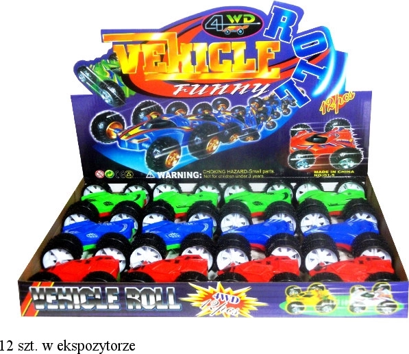 Ontdek actievol plezier met de dubbelzijdige auto die dankzij de frictie- (pull-back) aandrijving vooruit schiet en salto’s en rijden na omkantelen aankan. De ideale speelgoedauto voor kinderen die van snelheid en stunts houden.