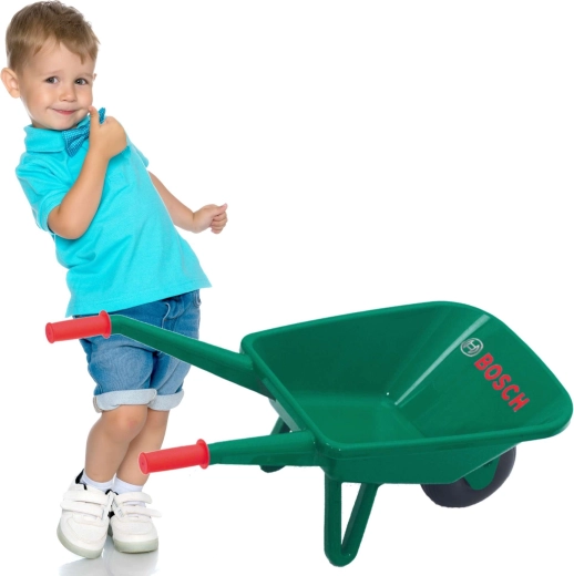 De BOSCH mini kinderkruiwagen is ontworpen voor kleine helpers die volwassenen willen nadoen in de tuin. Hij blinkt uit door zijn lage gewicht, eenvoudige hanteerbaarheid en duurzame kunststofconstructie in het groen met het BOSCH-logo. Dankzij de diepe bak kunnen kinderen gemakkelijk kleine ladingen, speelgoed, appels of tuinafval vervoeren.