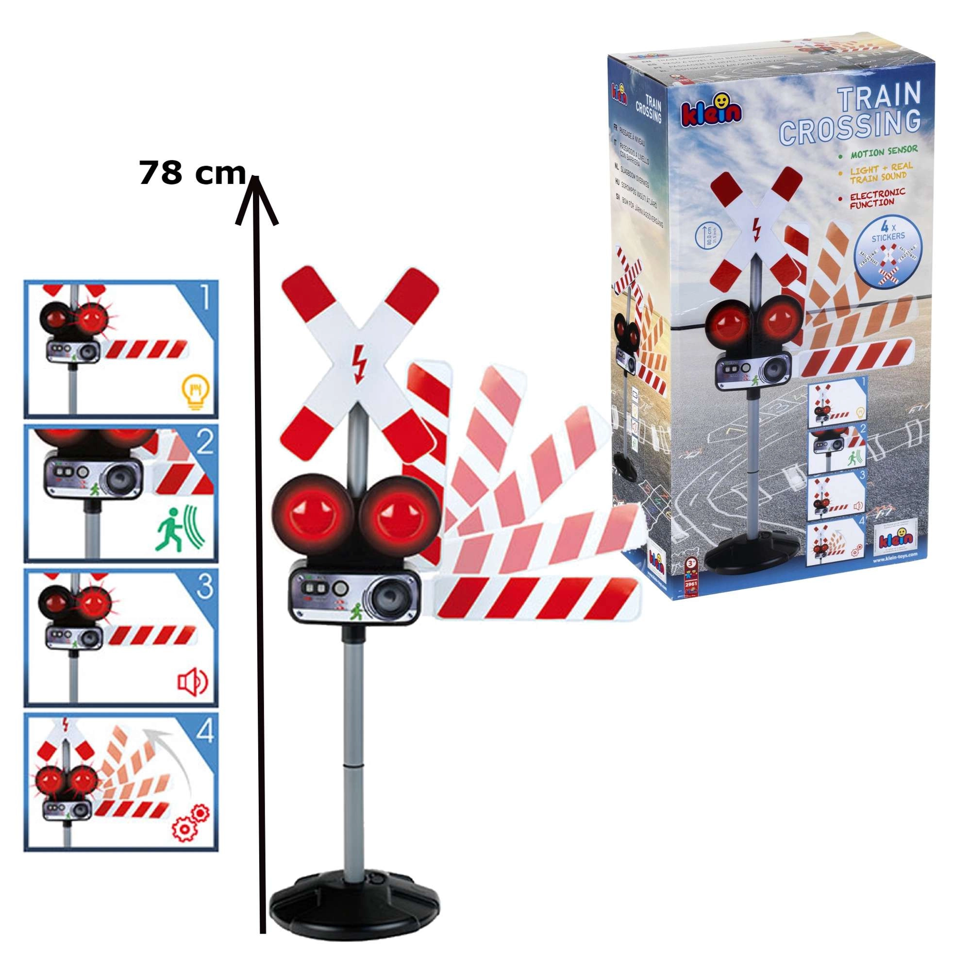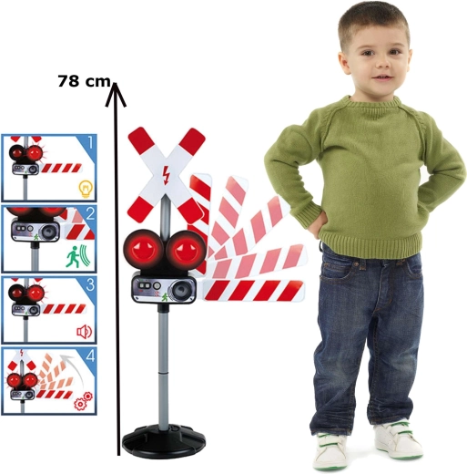De signalering kan handmatig of met de bewegingssensor worden geactiveerd. Een stabiele basis en hoogwaardige afwerking zorgen voor een lange levensduur, zelfs bij dagelijks spelen. De hoogte van 78 cm versterkt het realistische effect en past perfect bij treinbanen en verkeerssets.