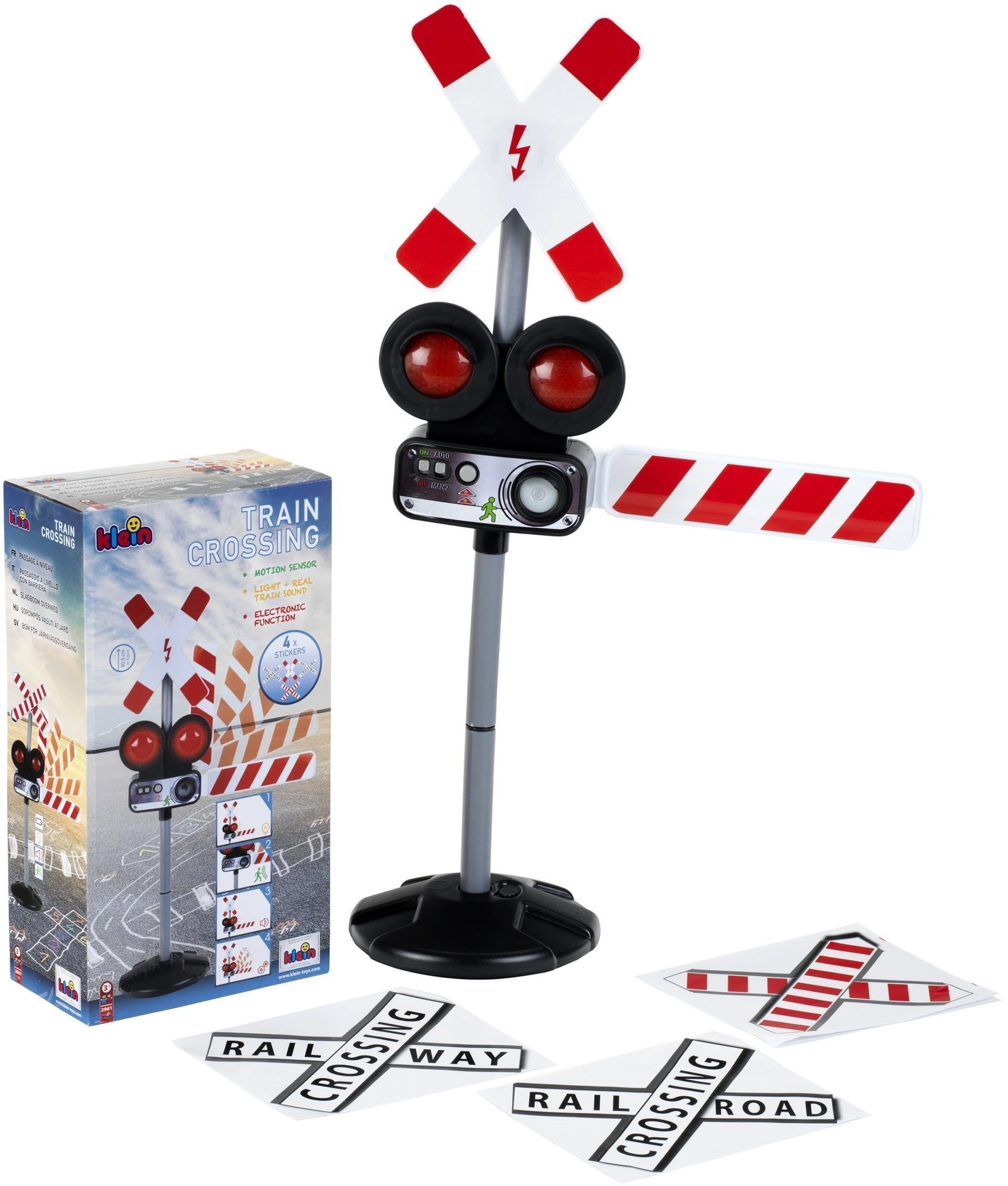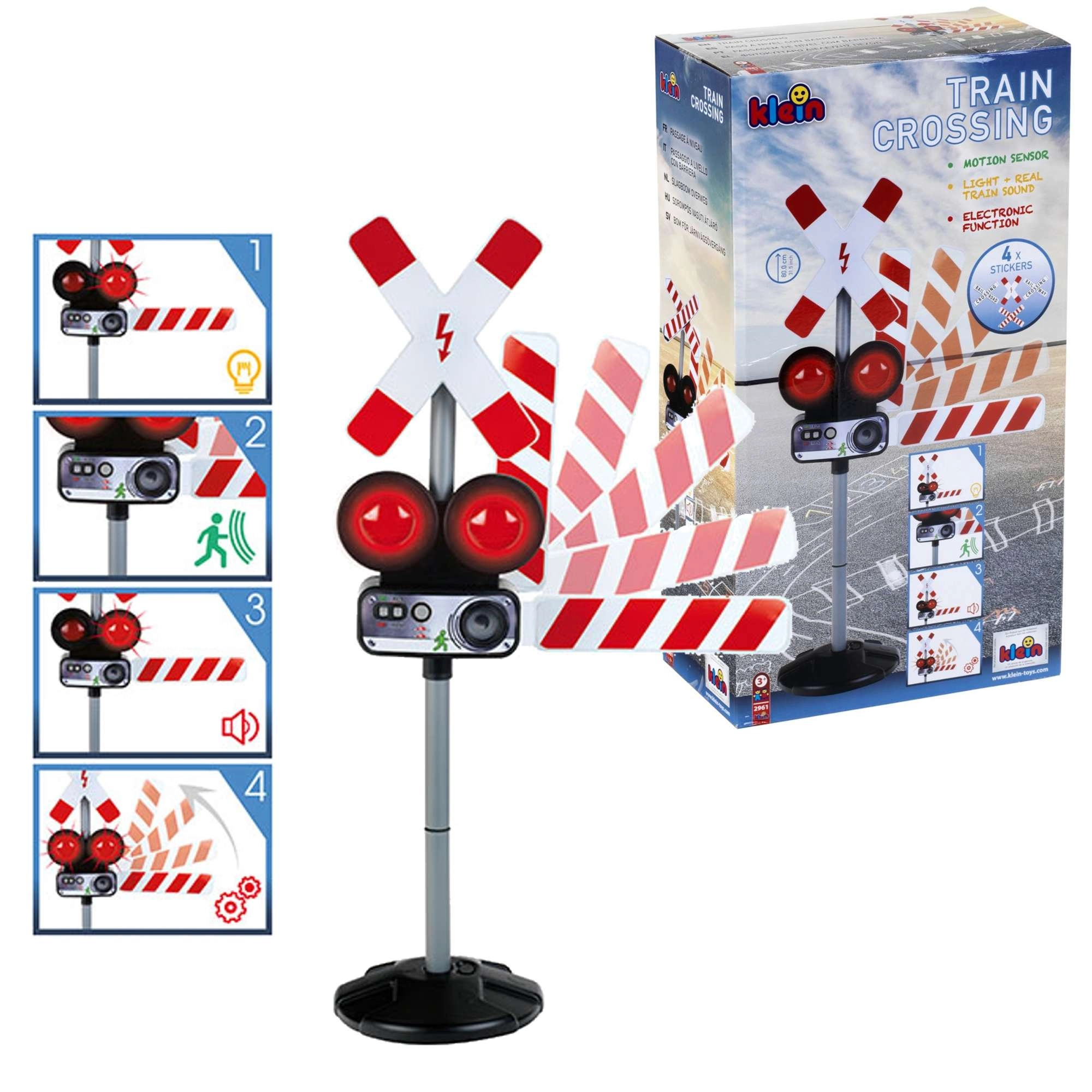 De slagboom gaat omlaag en omhoog zoals bij een echte overgang – stimuleert de fijne motoriek en een realistische verkeersopvoeding.