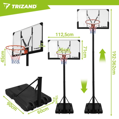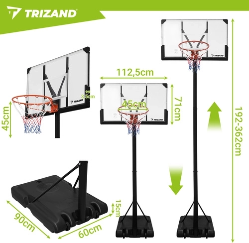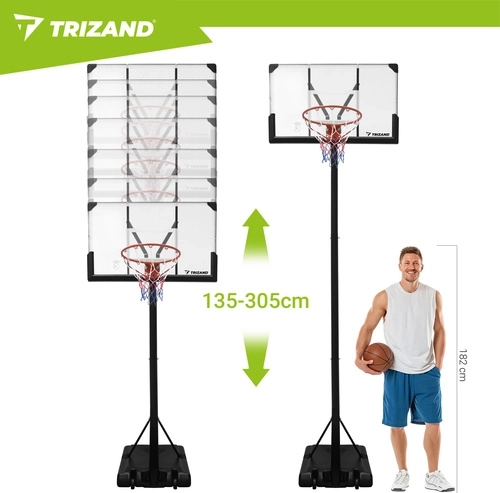 Geniet overal van training en spel met de draagbare basketbalring TRIZAND. Dankzij de traploos verstelbare hoogte van 135–305 cm, de stabiele constructie en de mobiele basis met wielen pas je de ring eenvoudig aan voor zowel kinderen als volwassenen. Een groot backboard en een standaard ring van 45 cm zorgen voor een realistische spelervaring thuis, in de tuin of op de oprit.