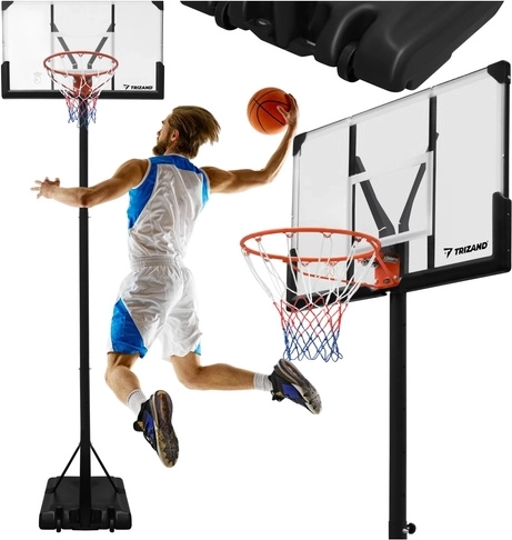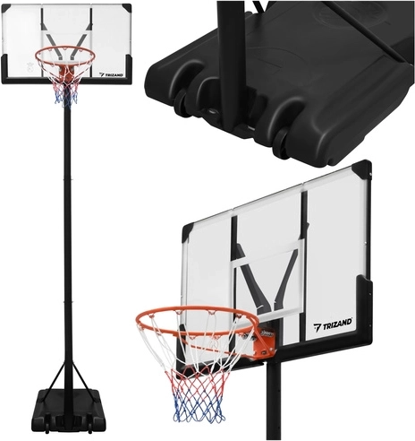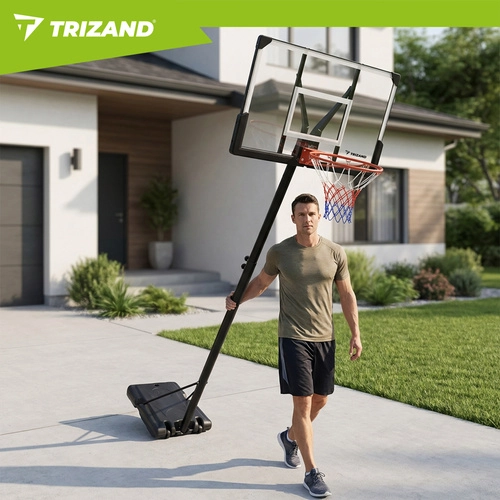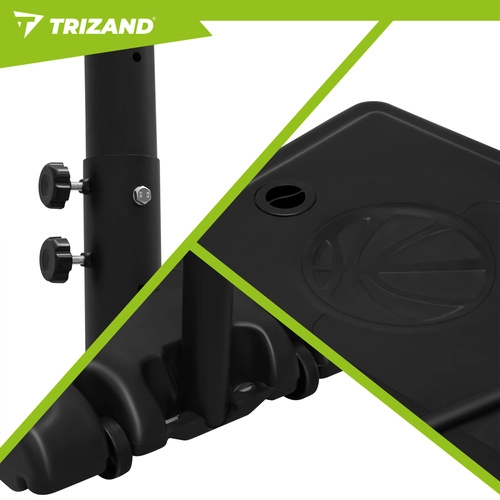 De TRIZAND basketbalring is een complete trainingsset voor recreatief spel en dagelijkse training. De verstelbare hoogte van 135–305 cm groeit mee met de spelers en maakt de juiste afstelling mogelijk voor kleine beginners en volwassenen. De robuuste stalen constructie en de basis met ballastmogelijkheid met water of zand zorgen voor veilige stabiliteit bij schoten en rebounds.