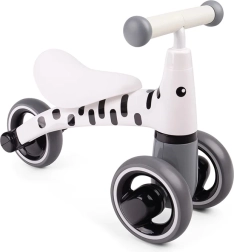 De schattige loopfiets Didicar zebra helpt kinderen vanaf 12 maanden hun evenwicht, coördinatie en grove motoriek te ontwikkelen. Dankzij de stabiele drie- tot vierwielige uitvoering, zachte handvatten en soepel rollende wieltjes is rijden comfortabel en veilig, zowel binnen als buiten. De lichte kunststof constructie, zithoogte 24 cm en draagvermogen 20 kg maken het een ideaal eerste voertuigje voor peuters.