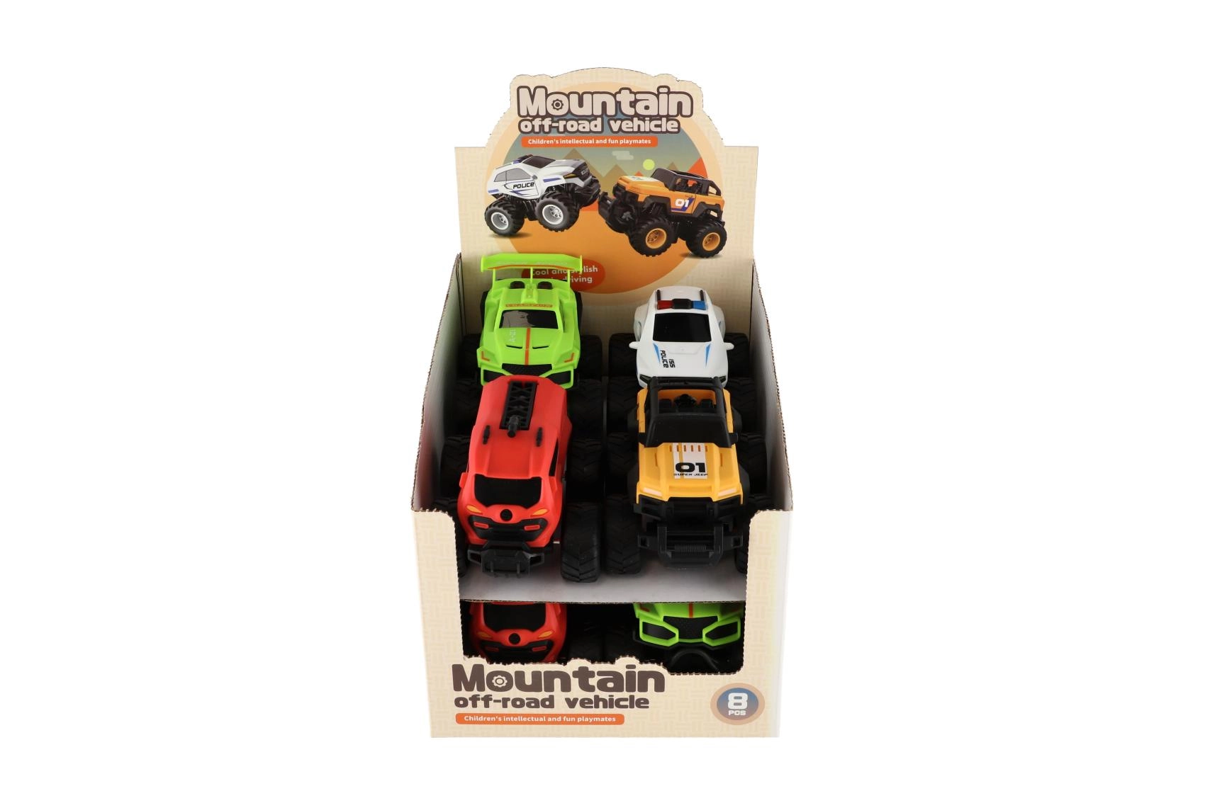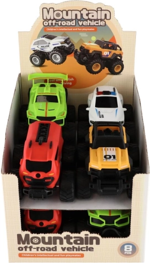 Ontdek een portie speelplezier met compacte monstertrucks die hobbels, tapijten en kleine obstakels de baas zijn. De vliegwielaandrijving zorgt voor vlotte ritten zonder batterijen en de grote tractorachtige wielen geven stabiliteit, ook in bochten. In de verpakking zitten 8 stuks in 4 verschillende designs, inclusief politie- en brandweerthema – ideaal voor races en rollenspel.