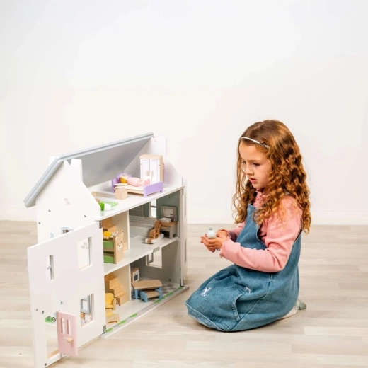 De set bevat 31 zorgvuldig vervaardigde onderdelen voor woonkamer, keuken, badkamer en twee slaapkamers – kinderen kunnen elke kamer eenvoudig inrichten en de opstelling naar eigen fantasie veranderen.