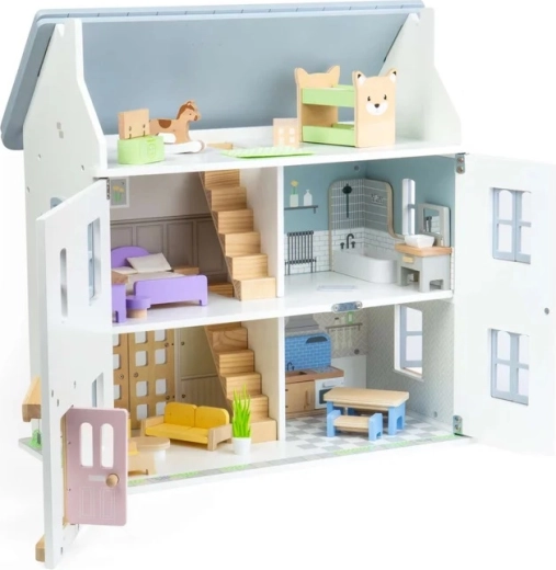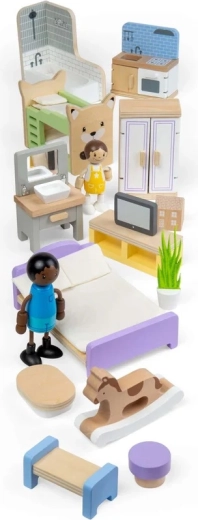 Materiaal met FSC-certificering garandeert een verantwoorde herkomst van het hout en hoge duurzaamheid. De set is compatibel met de meeste standaard poppenhuizen en ondersteunt perfect rollenspellen, verhalen vertellen en het oefenen van alledaagse situaties.