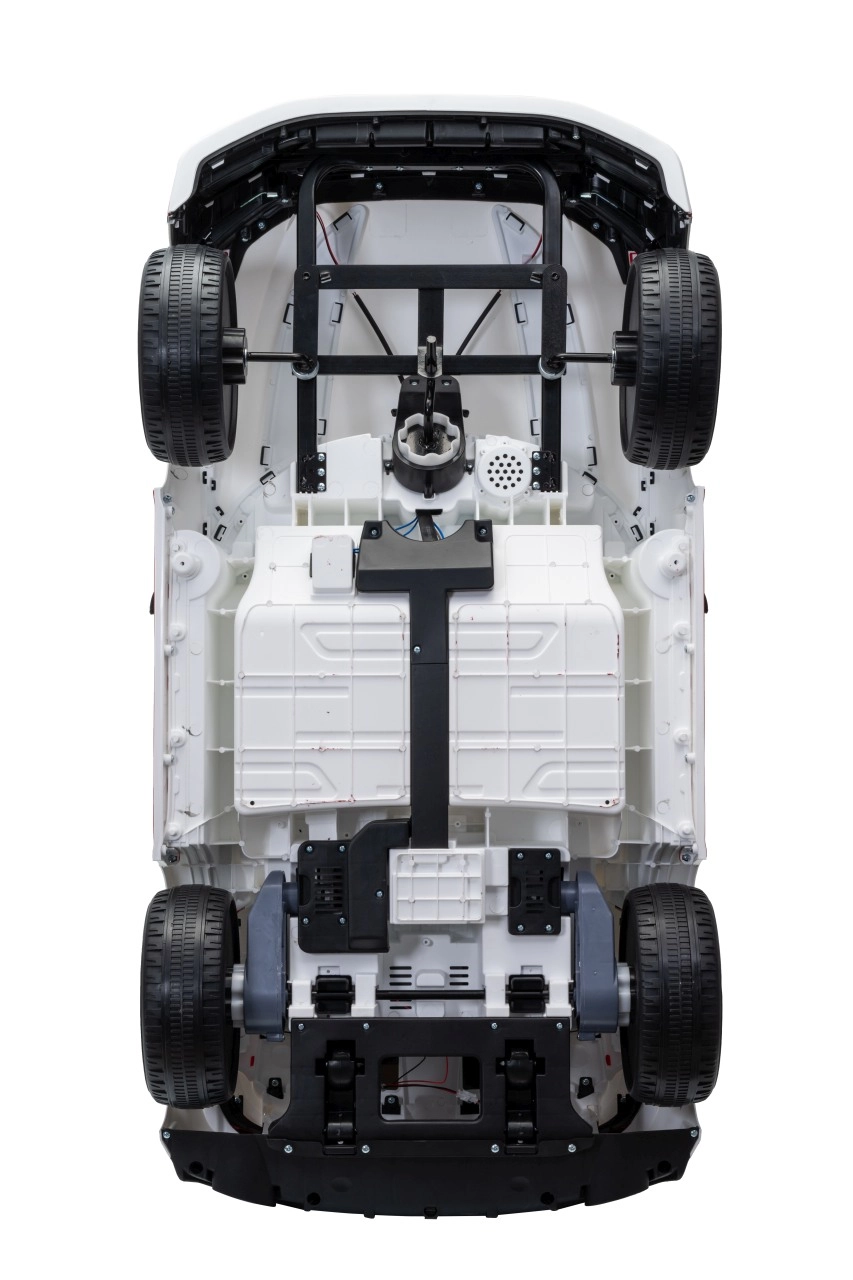 Grote EVA-banden (21 × 9 cm) met vering voor en achter dempen oneffenheden en verhogen het comfort. Voor een authentieke beleving zorgen openende deuren, LED-verlichting en nauwkeurige carrosseriedetails. Het audiopaneel met MP3, Bluetooth, USB en AUX verzorgt favoriete muziek tijdens het rijden, terwijl de laadindicator de accustatus toont.