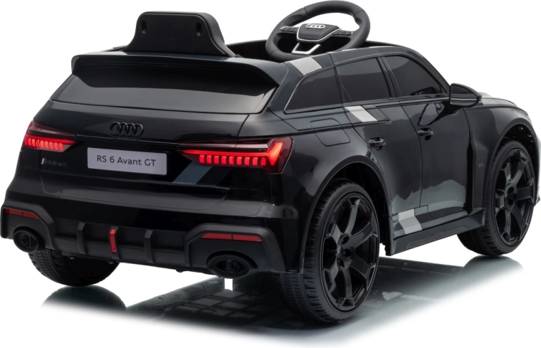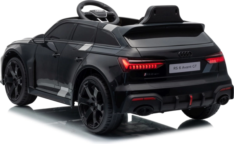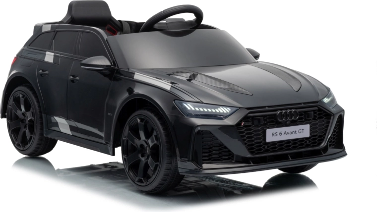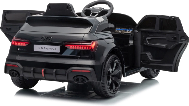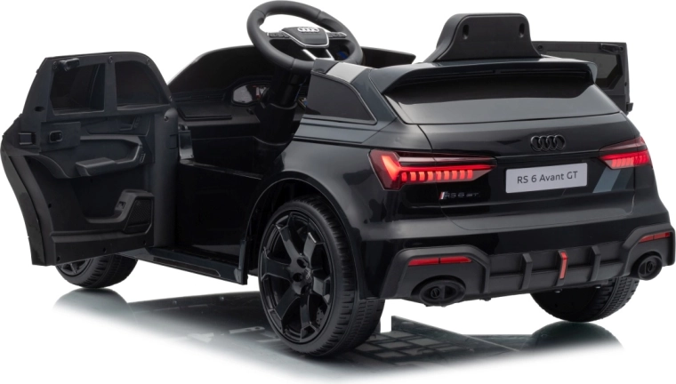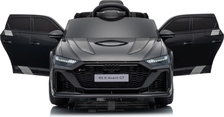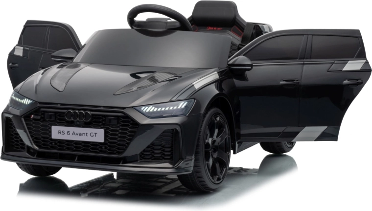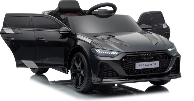 Stijlvolle elektrische kinderauto geïnspireerd op het legendarische model AUDI RS 6 AVANT GT, met een krachtige 4×35 W aandrijving, een 12 V / 9 Ah accu, openende deuren en zachte EVA-banden voor comfortabel rijden. Inclusief 2,4 GHz afstandsbediening met veiligheidsknop Stop, LED-verlichting en een multimediapaneel met Bluetooth, USB, MP3 en AUX.