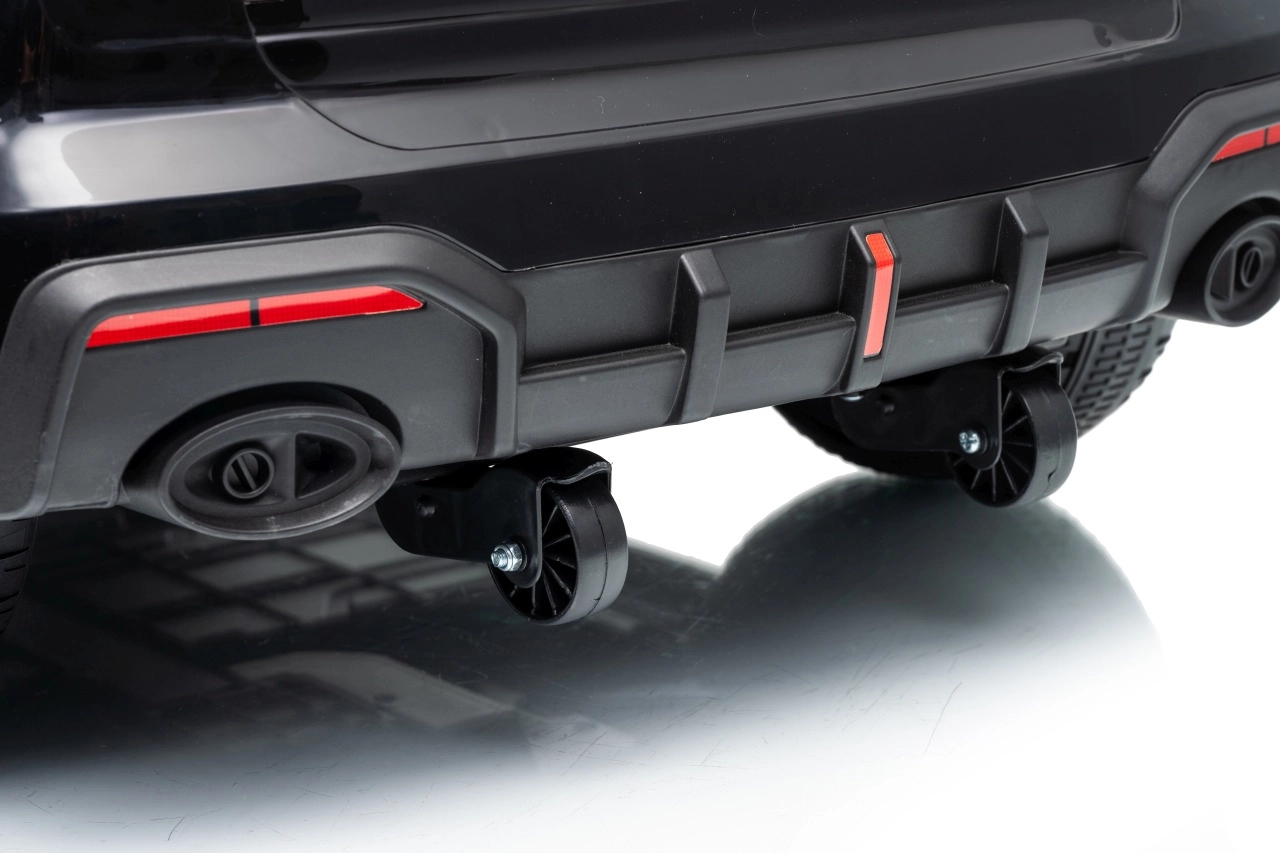 Voor comfortabel zitten is er een stoel van eco-leer met veiligheidsgordels. De auto is geschikt voor kinderen tot ca. 30 kg en past met zijn afmetingen van 113 × 63 × 48 cm ook in kleinere ruimtes. In de verpakking zitten een lader, handleiding en een montageset.