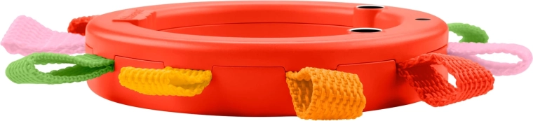 Deze compacte ring is ontworpen voor kleine handjes: hij is licht, veilig afgerond en dankzij meerdere makkelijk vast te pakken lusjes eenvoudig te hanteren. Afwisselende oppervlakken en kleuren nodigen uit tot ontdekken en spelen, terwijl het zachte rammelen het gehoor ontwikkelt.