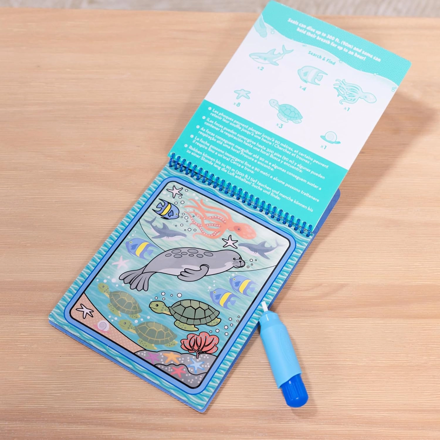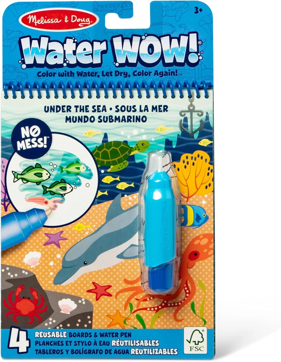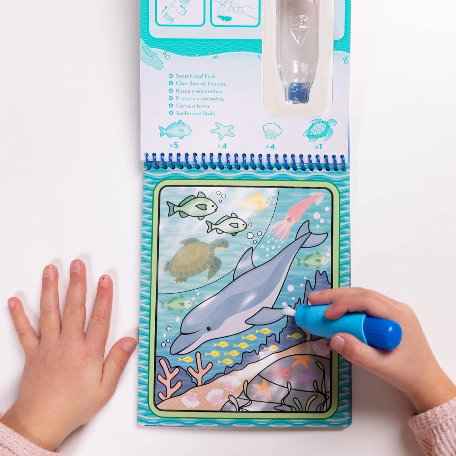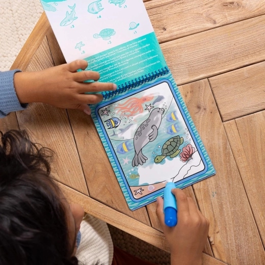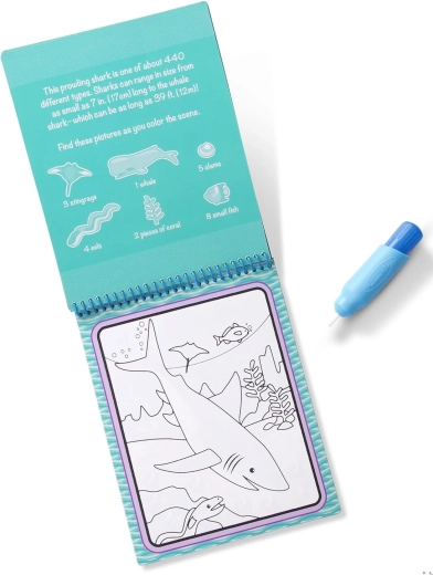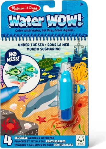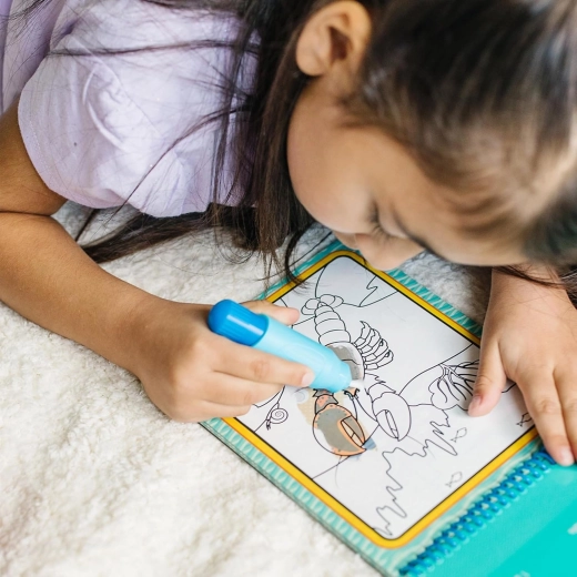 Deze herbruikbare set bevat 4 stevige, spiraalgebonden kaarten met onderwaterthema’s en een navulbare waterpen. Kinderen schilderen alleen met water, dus er komen geen vlekken op handen of meubels. Zodra de pagina’s droog zijn, verdwijnen de kleuren en kan de pret weer van voren af aan beginnen.