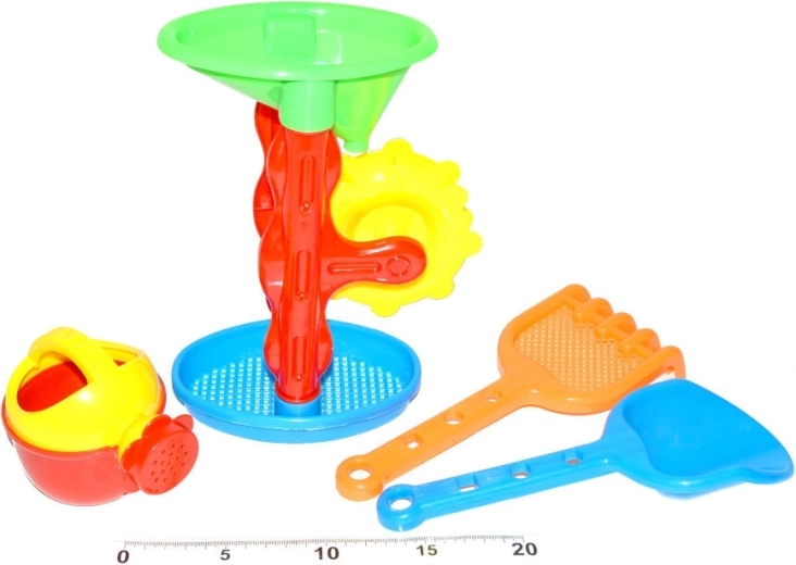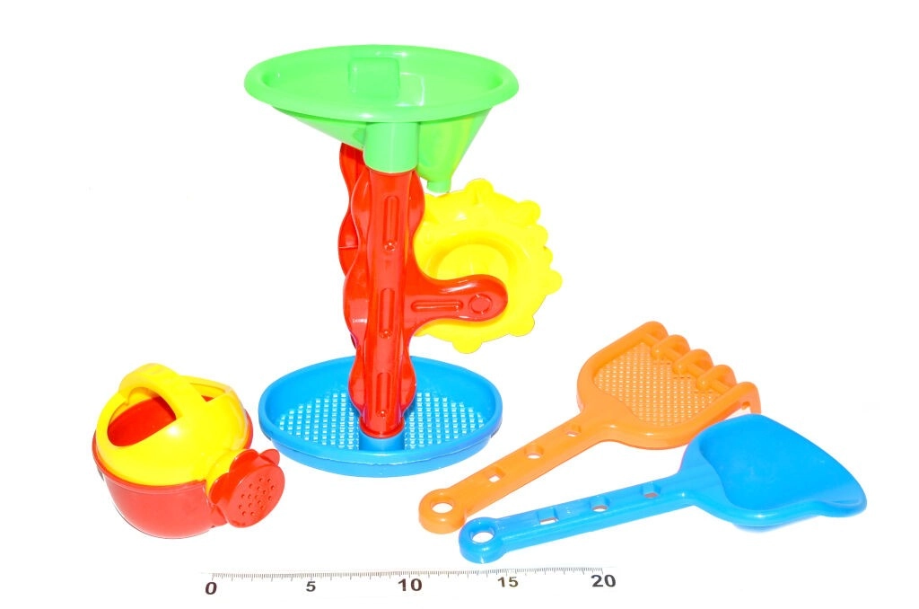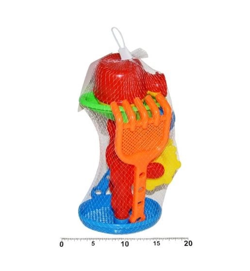 De kinderset voor in het zand bevat 4 praktische accessoires – een gieter, schep, harkje en zeef. Ideaal voor spel op de zandbak, het strand en in de tuin. Gemaakt van hoogwaardige en duurzame kunststof die geschikt is voor kinderhanden. Stimuleert de fantasie, creativiteit en fijne motoriek.