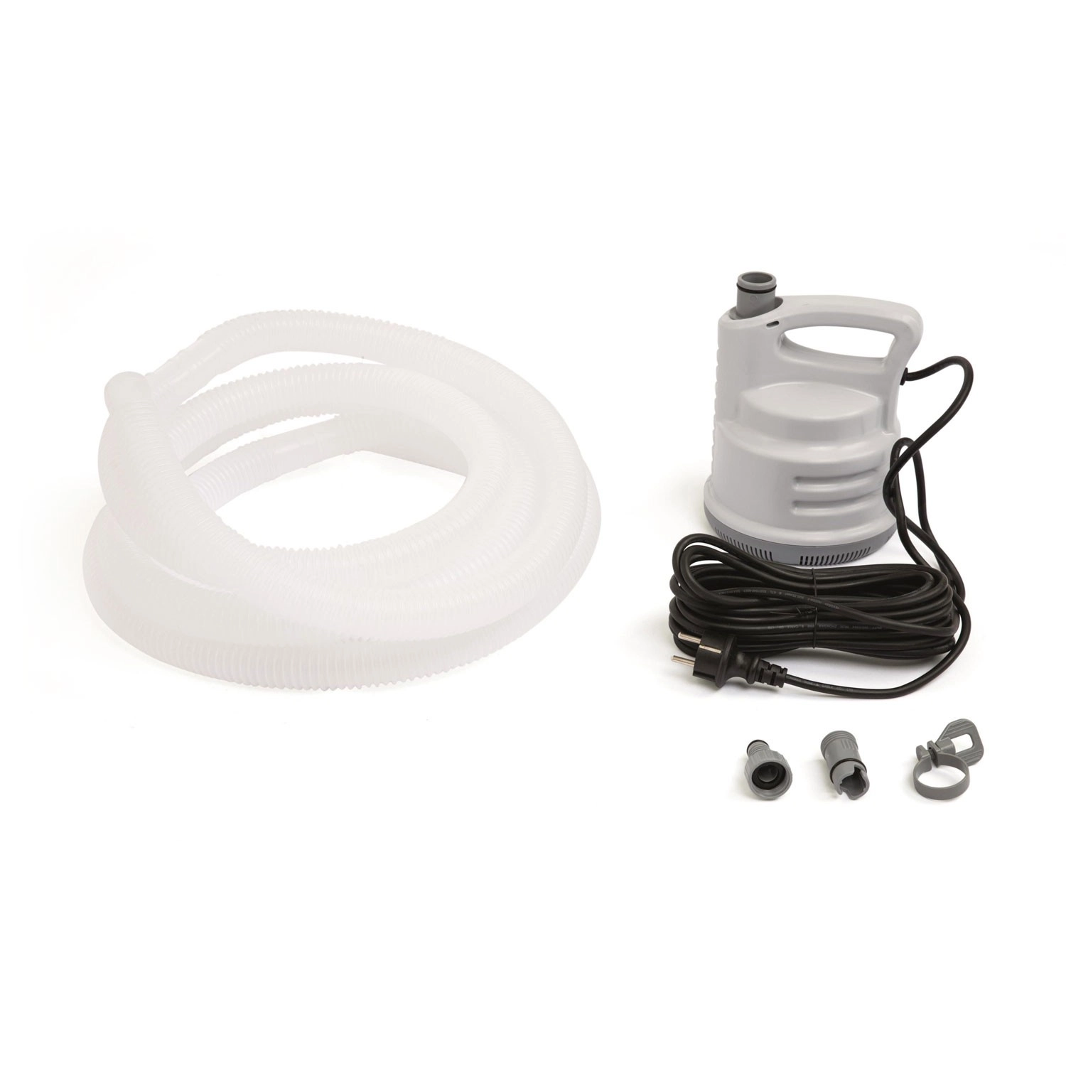 In de verpakking zit alles wat u nodig heeft voor direct gebruik – een afvoerslang van 5 m, adapters voor tuinslang en een klem voor een veilige aansluiting. Dankzij de voeding van 220–240 V en een vermogen van 80 W is de pomp energiezuinig en tegelijk krachtig genoeg voor het snel leegpompen van zwembadwater.