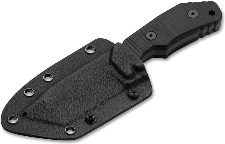 Het ergonomische, deels geribbelde handvat van G10 in zwart ligt stevig in de hand, ook onder veeleisende omstandigheden. Dankzij het koordoog en de riemclip heb je het mes altijd binnen handbereik. De hoogwaardige Kydex schede is inbegrepen voor veilig en discreet dragen. Voor creatieve gebruikers is het eenvoudig om alternatieve schalen te printen op een gangbare 3D-printer in diverse vormen, kleuren en materialen.