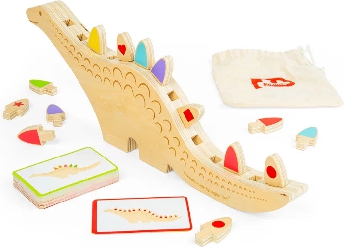 - Houten sorteer- en balansspel met dinosaurus-thema