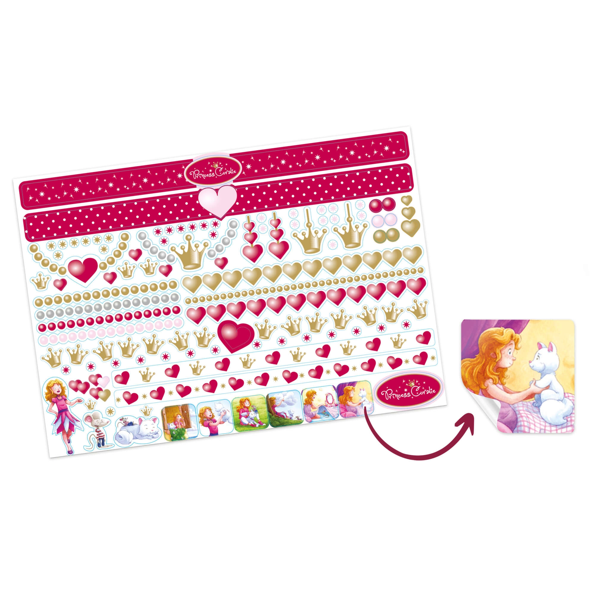 Inclusief een compact palet met oogschaduws, lipgloss en applicators voor speels PRINCESS CORALIE-sminken. Alles is ontworpen voor kinderspel.
