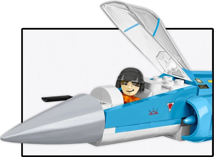 Getrouwe proporties, deltavleugel, gedetailleerde cockpit en camouflage. Ideaal voor in de vitrinekast én creatief spel dankzij de stevige standaard met naamplaatje.