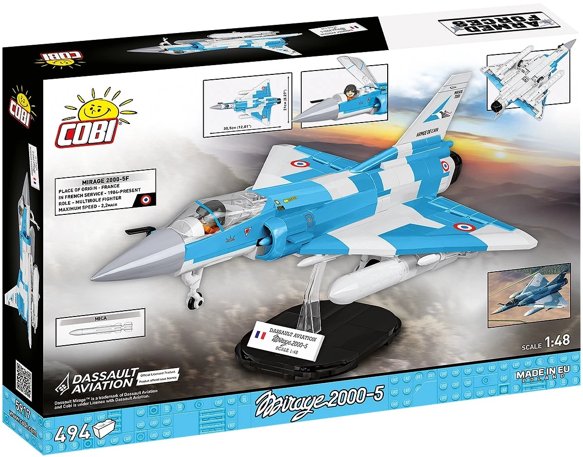 Ontdek de gemoderniseerde icoon van de Europese luchtvaart – Mirage 2000-5. Deze premium bouwset combineert de elegante deltavleugel, het authentieke blauw‑witte camouflagepatroon en verfijnde details die uitblinken zowel tijdens het spelen als op de displaystandaard. Dankzij de te openen canopy met plaats voor een piloot, bewegende elementen en MICA-bewapening bouw je een indrukwekkend model met het getrouwe karakter van het origineel van DASSAULT AVIATION.