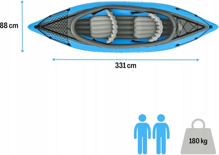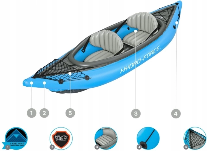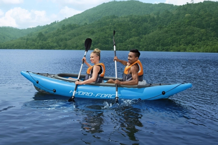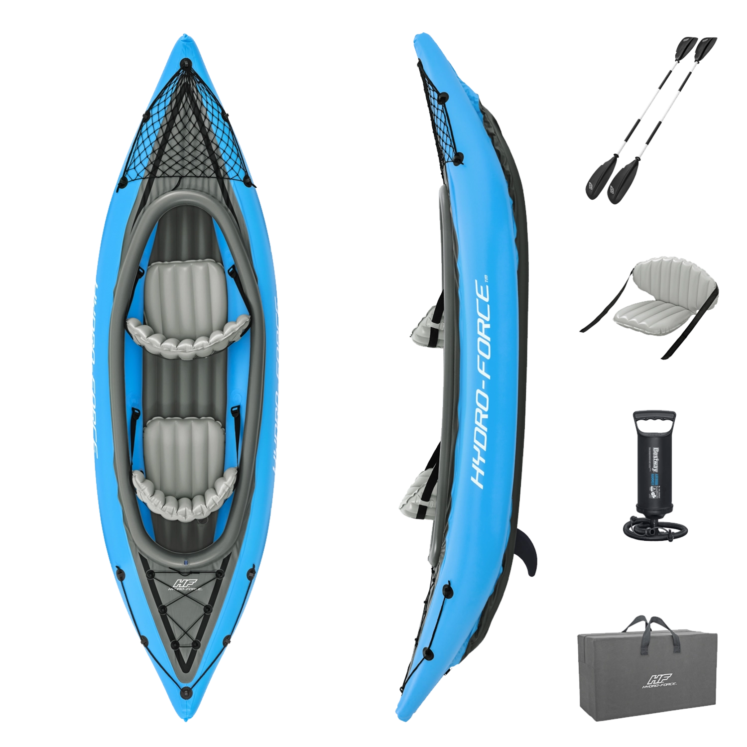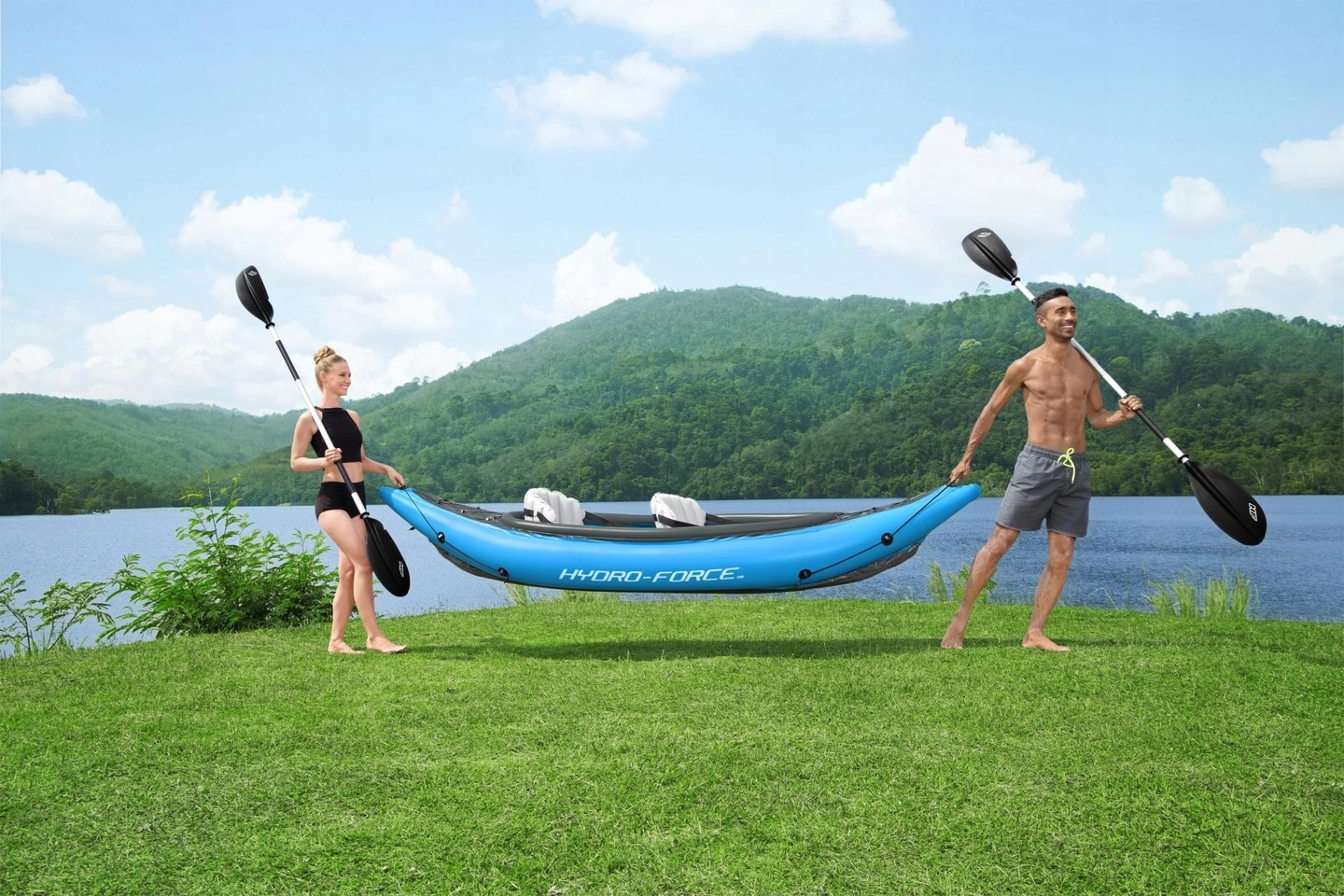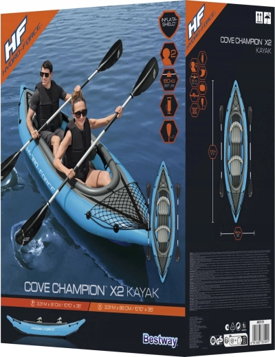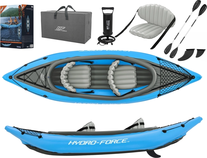 De opblaasbare kajak Hydro‑Force Cove Champion X2 is ideaal voor recreatief peddelen op meren en rustige rivieren. In de set vind je alles wat je nodig hebt: 2 dubbele peddels, een Air Hammer handpomp, 2 verstelbare opblaasbare stoelen met rugleuning en een transporttas. De robuuste meerlaagse constructie met een stevige opblaasbare vloer zorgt voor stabiliteit en vertrouwen op het water.