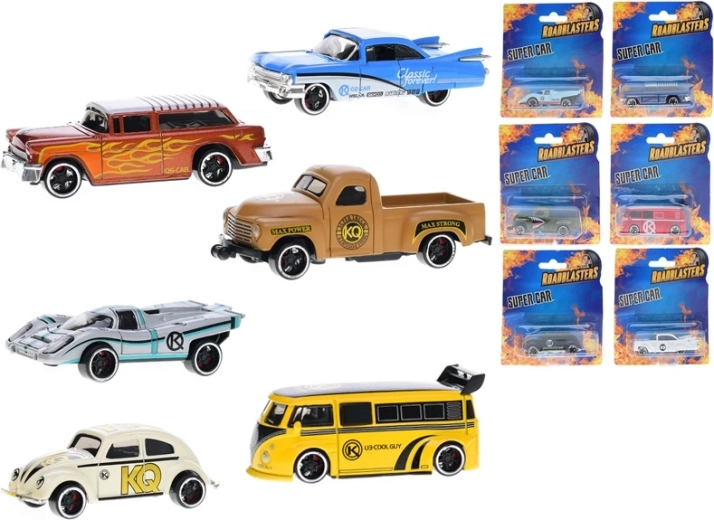 Ontdek plezier op volle toeren met het metalen autootje ROADBLASTERS. Dankzij de vrije loop rijdt het autootje na een zacht duwtje soepel verder zonder batterijen. De duurzame metalen uitvoering garandeert een lange levensduur, zelfs bij vaak spelen, en het compacte formaat van 7 cm is ideaal voor kinderhanden en voor onderweg.