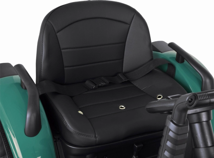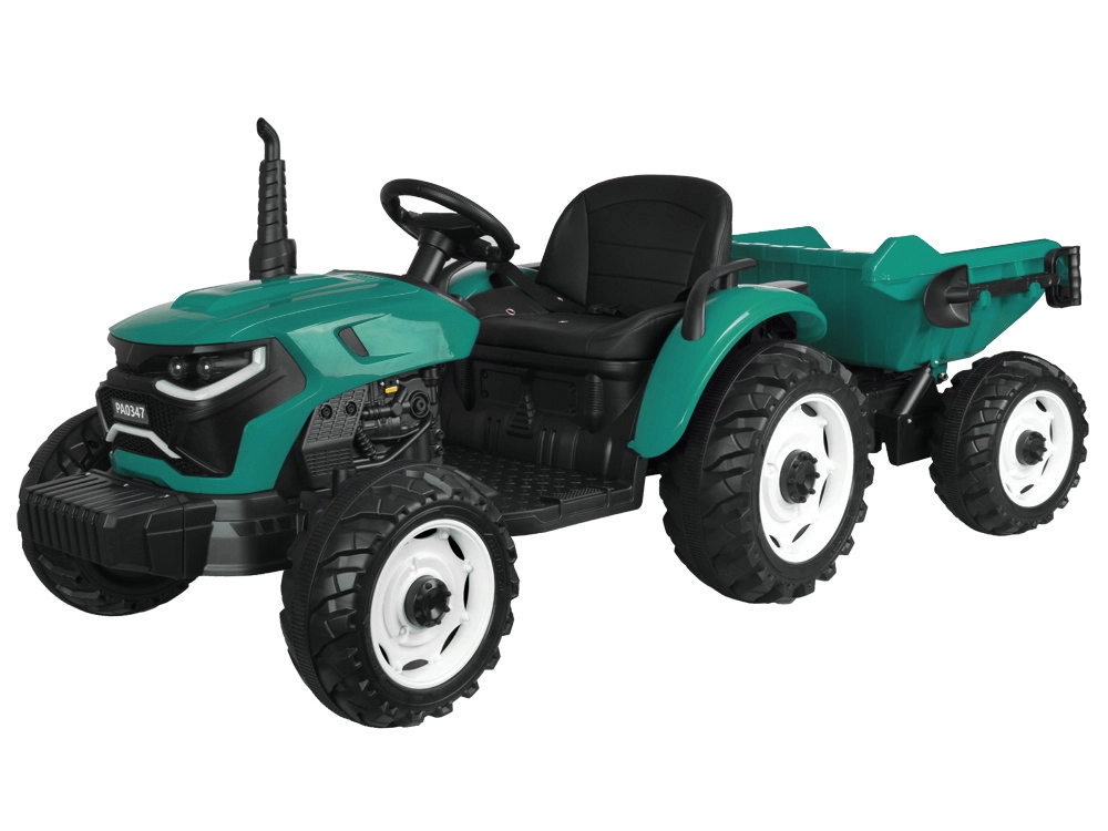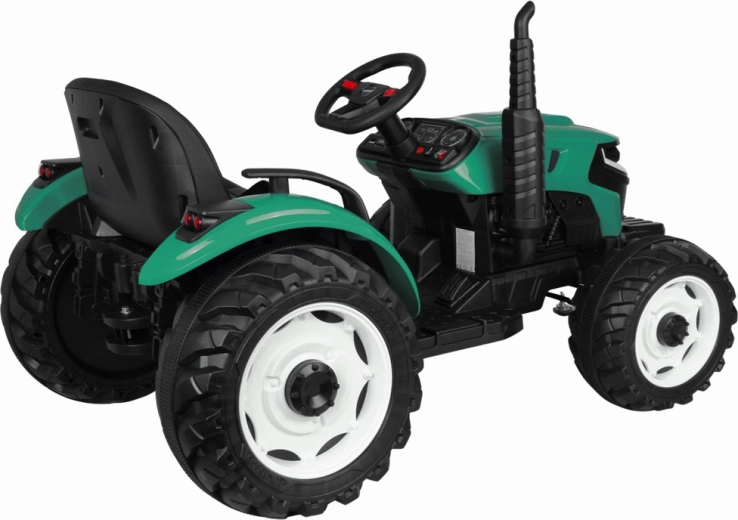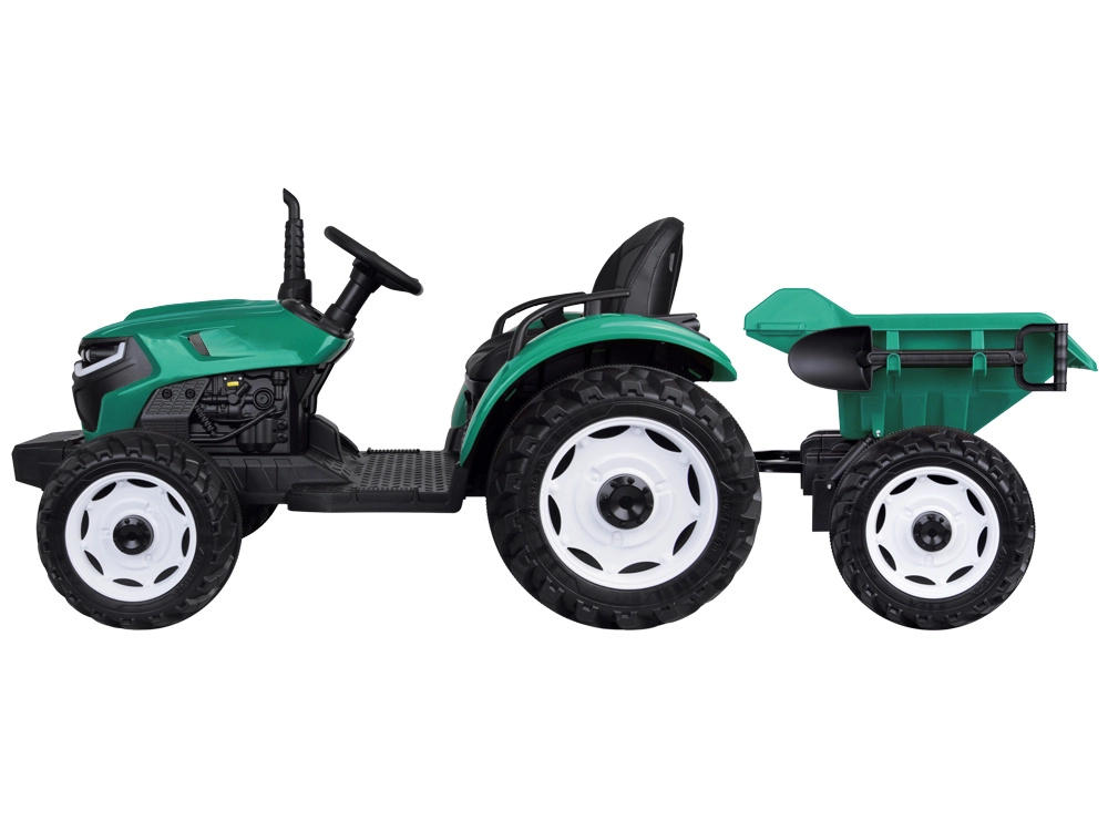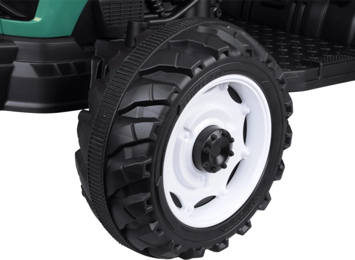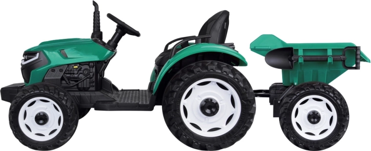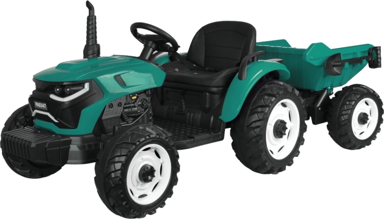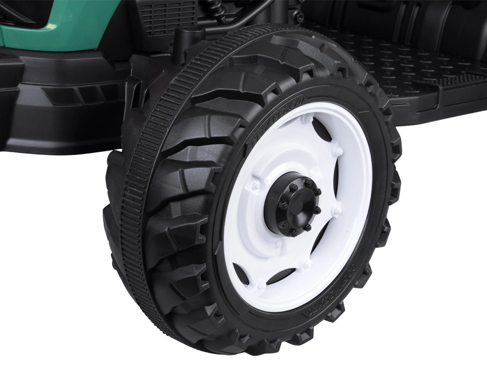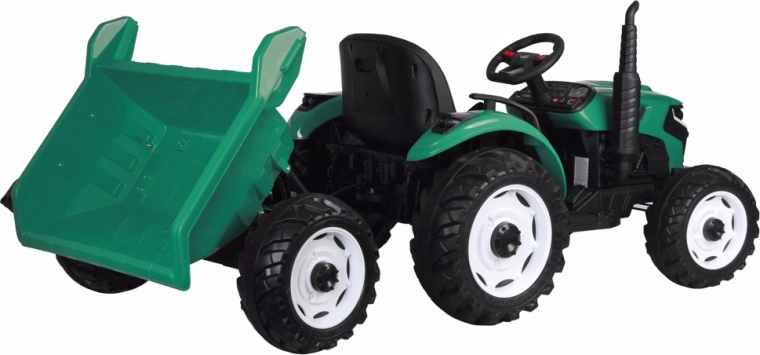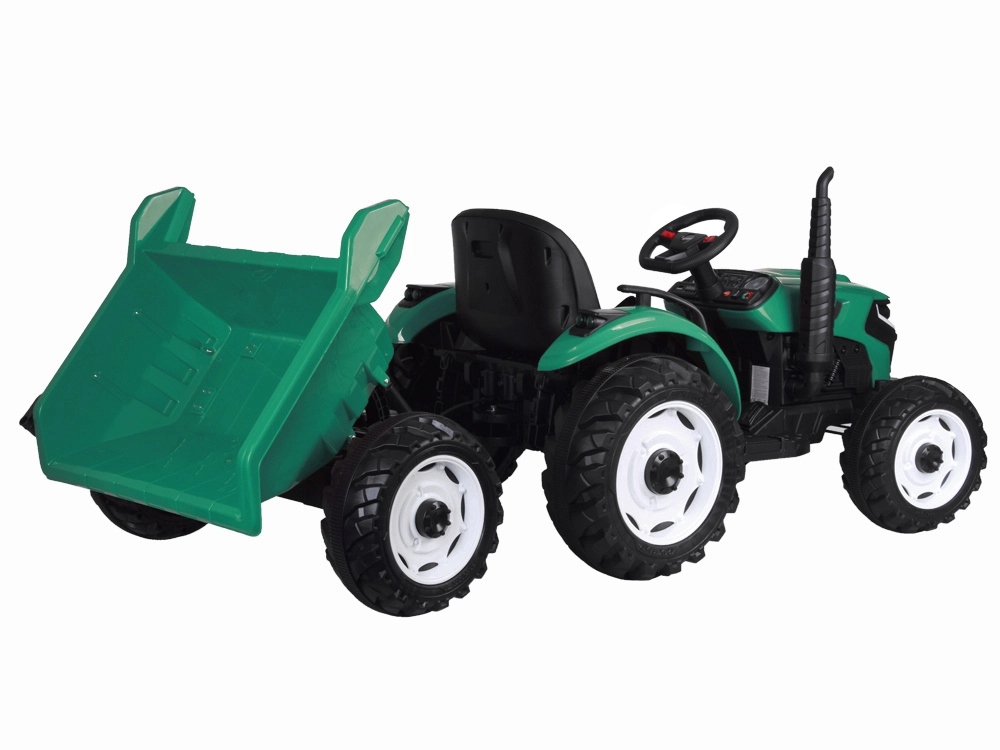 De elektrische tractor met afneembare aanhanger is een uitstekende keuze voor kleine boeren. De grote geprofileerde wielen kunnen zowel gras als verharde paden aan, de soepele start zonder schokken verhoogt het comfort en de veiligheidsriem houdt het kind stevig in het zadel. Het bedieningspaneel met lichten, claxon en USB zorgt voor extra sfeer.