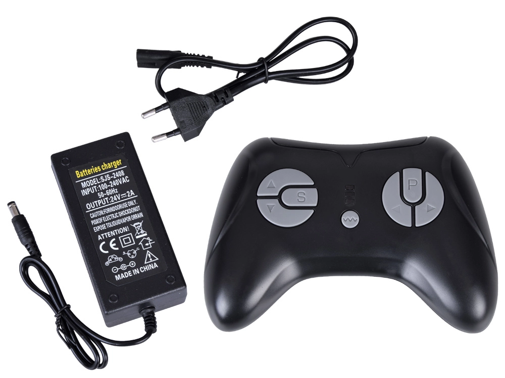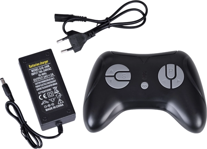 - Afstandsbediening, 24 V-lader, afneembare schep