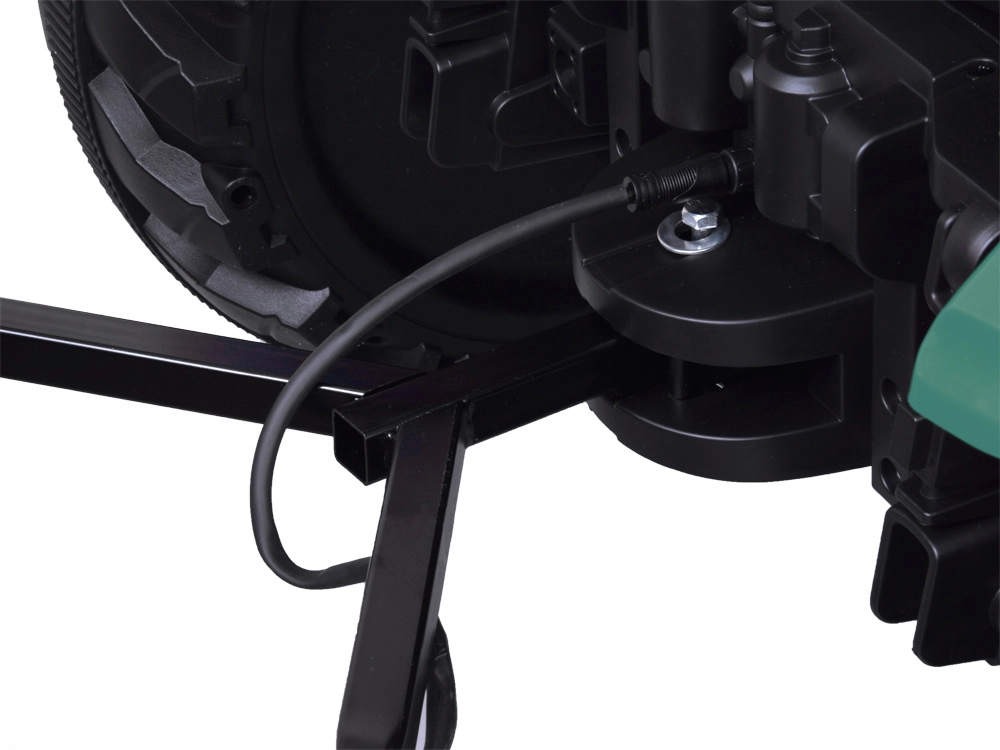 Twee krachtige motoren zorgen voor een schokvrije rit tot circa 6 km/u. Grote wielen met diep profiel houden de koers op gras en verharde ondergrond.