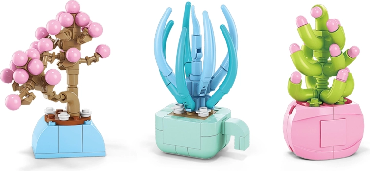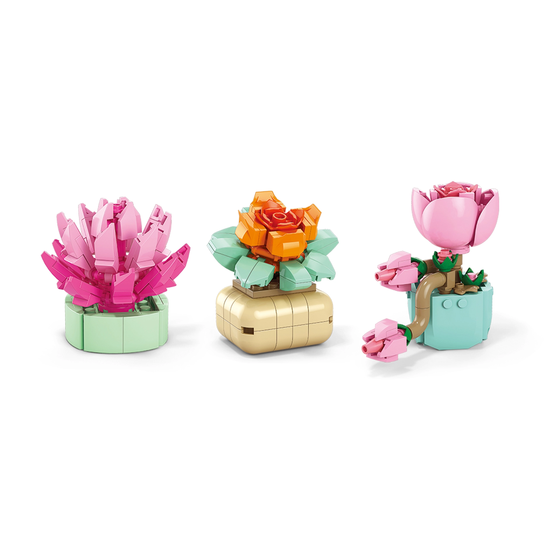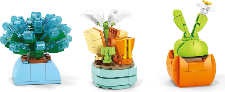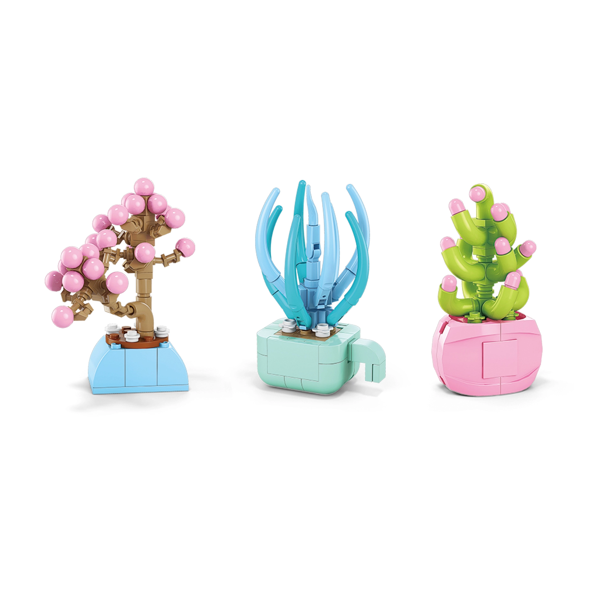 Creëer je eigen groene hoekje zonder water geven of zorgen. Met deze bouwset bouw je kleurrijke bloemen, vetplanten en kleine bonsai’s die elk interieur verfraaien. De modellen zijn stabiel, gedetailleerd en klaar om neer te zetten.