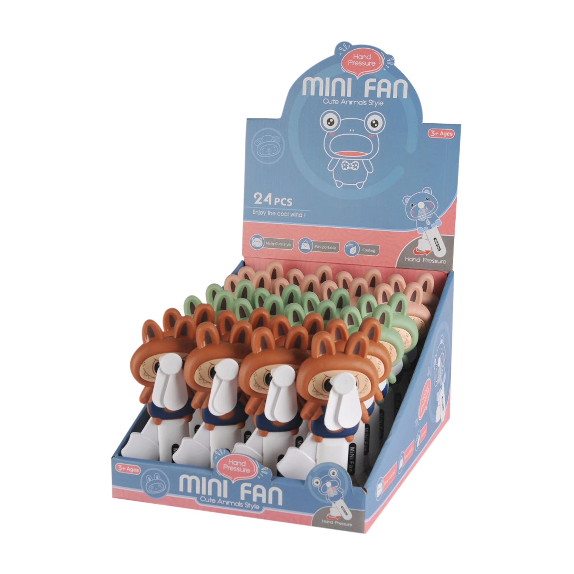 Geniet van directe verfrissing met deze schattige handventilator in konijnenvorm. Dankzij de mechanische vliegwielaandrijving werkt hij zonder batterijen – gewoon herhaaldelijk de hendel indrukken en het propellertje gaat draaien. De lichte kunststof constructie ligt comfortabel in de hand, ook bij kinderen.