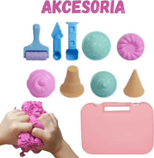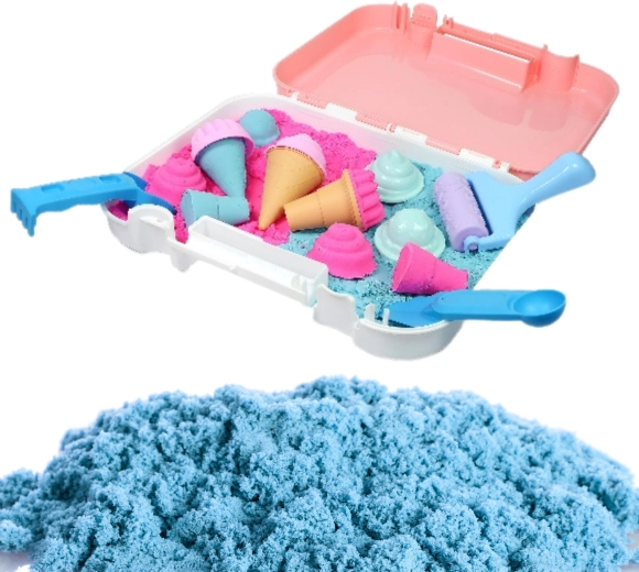 - 1000 g Soft kinetisch zand (2 kleuren: roze en blauw) voor urenlang creëren.