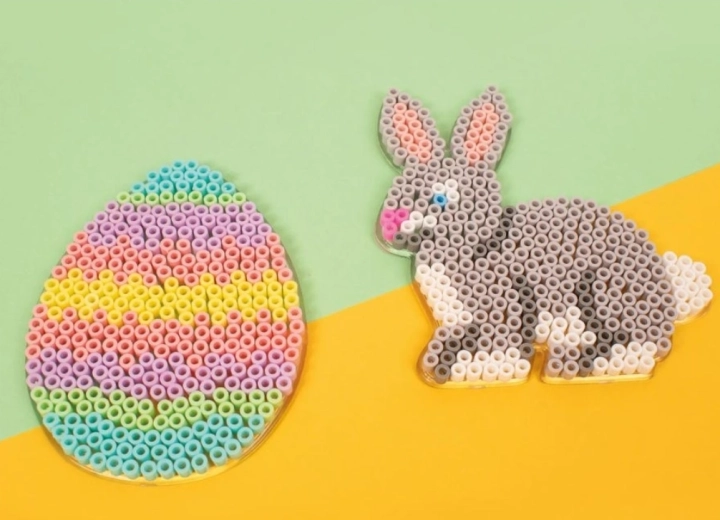 Maak mooie paasafbeeldingen, patronen en decoraties met de transparante PLAYBOX onderplaten voor strijkkralen met een diameter van 5 mm. Het transparante design maakt eenvoudig gebruik met sjablonen en een nauwkeurige opbouw van motieven mogelijk.