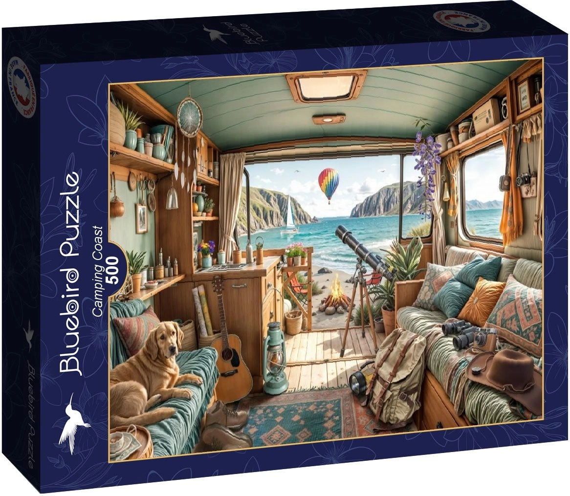 Ontdek de charme van een kustlandschap met een kampeerthema en leg een harmonisch beeld dat je interieur siert. De puzzel met 500 stukjes is ideaal voor ontspanning, het ontwikkelen van geduld en een scherp oog – en biedt tegelijk een prettige uitdaging in een compact formaat.