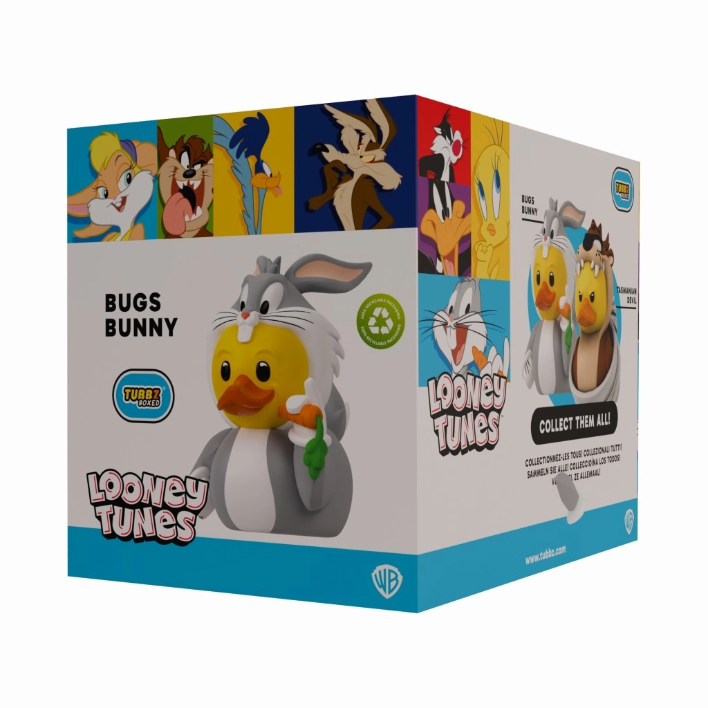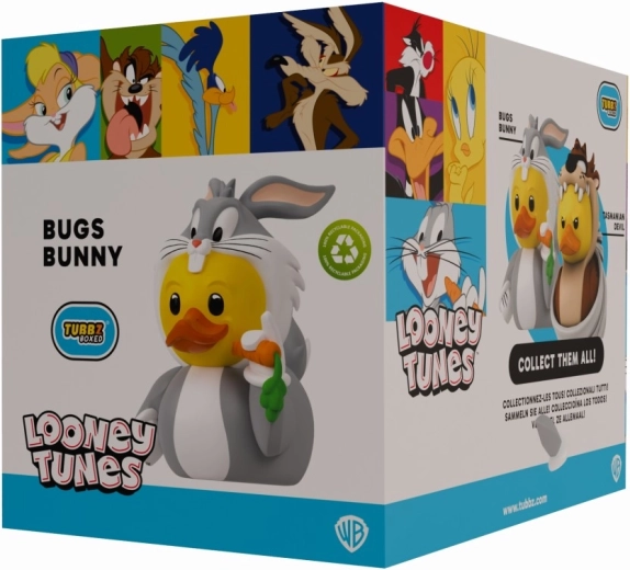 Deze gelicentieerde Tubbz-figurine transformeert het iconische konijn BUGS BUNNY in een schattig badeendje. Toont trouw zijn grijs-witte kleur, lange oren en kenmerkende glimlach – allemaal in een compact formaat dat geweldig oogt op de plank en in de collectie. Het gladde oppervlak met matte en glanzende accenten benadrukt de doordachte details.