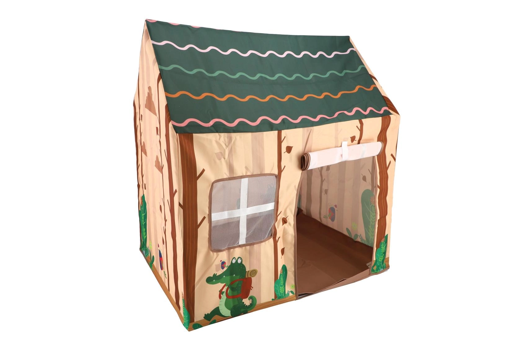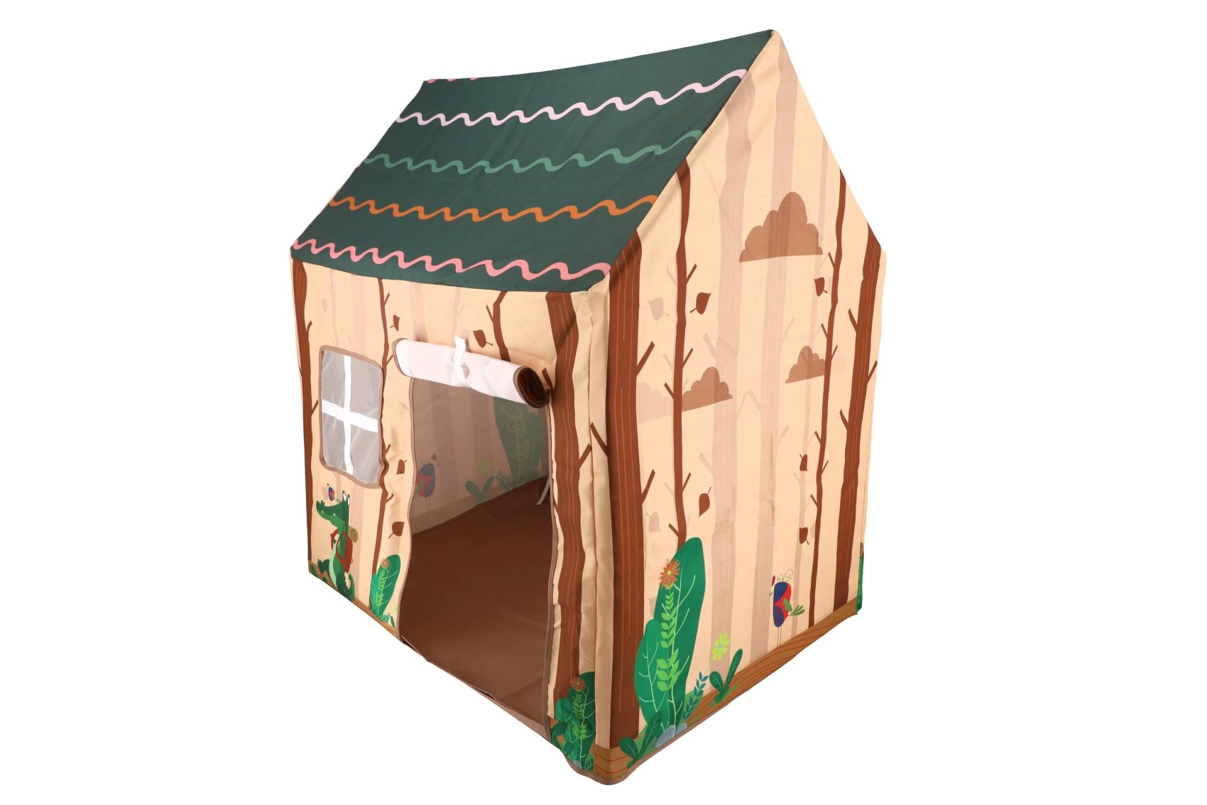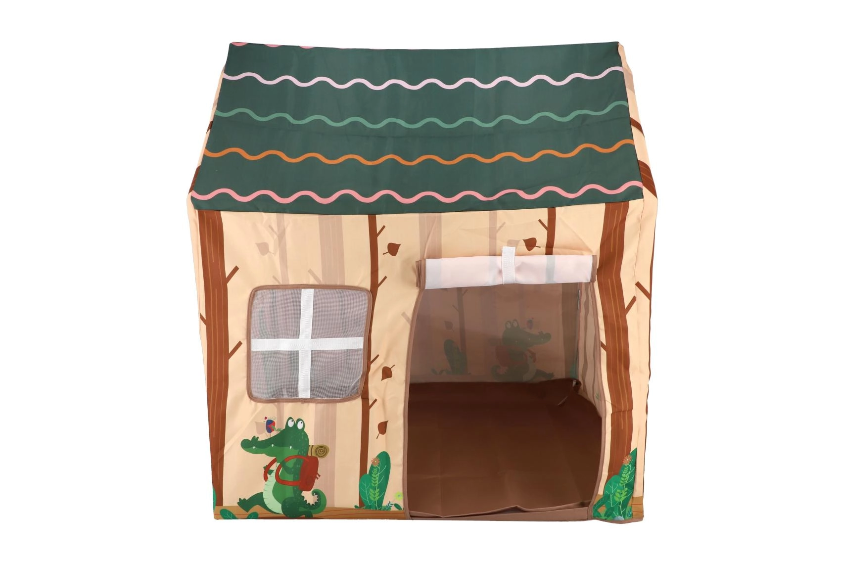 De speeltent in huisjesvorm verandert de kinderkamer in een betoverend hoekje vol fantasie. De lichte constructie zorgt voor snelle montage en gemakkelijk verplaatsen, zodat kinderen er overal van kunnen genieten – in de woonkamer, kinderkamer of op het terras.