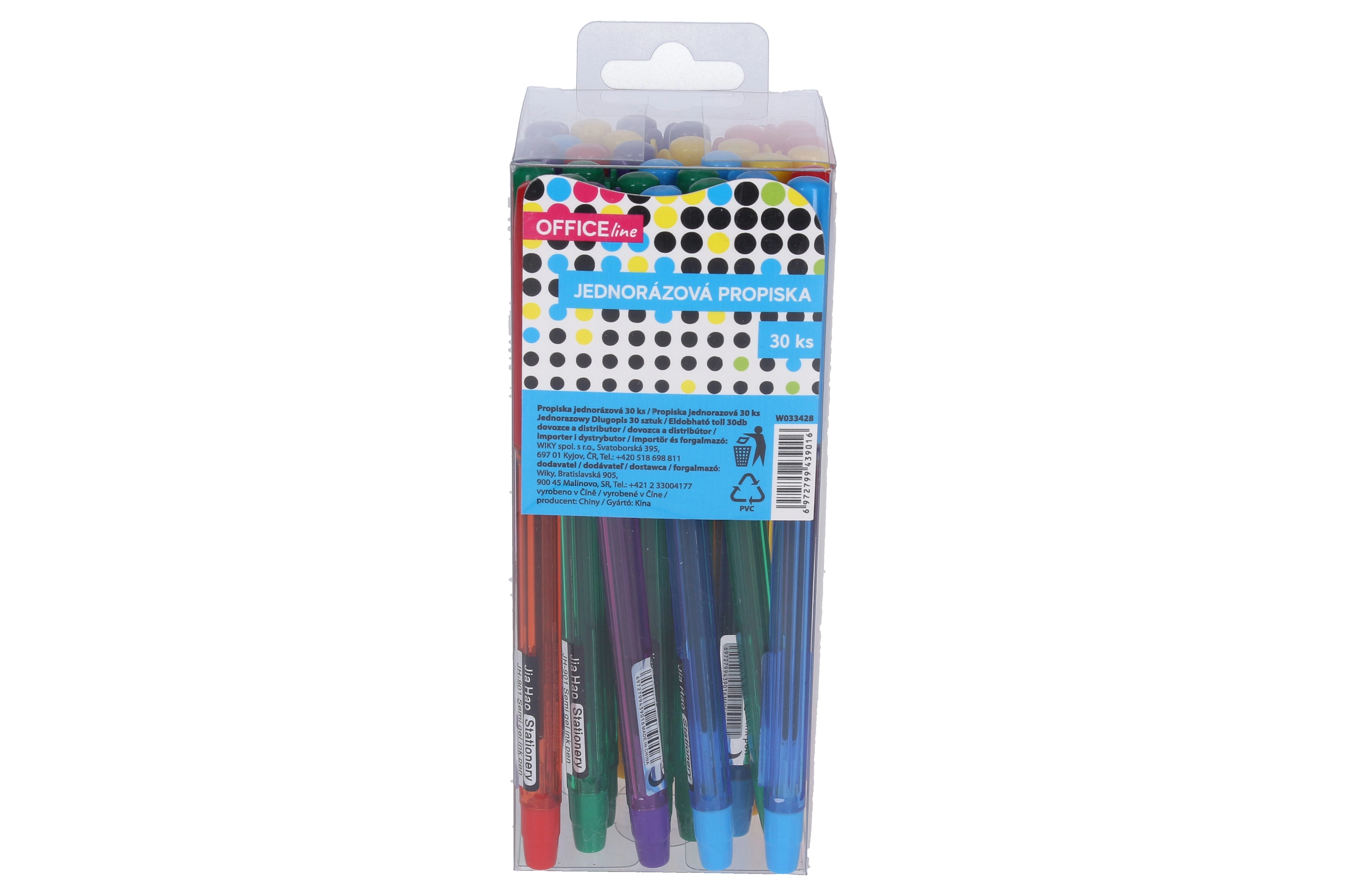 Praktische en voordelige set wegwerpbalpennen met blauwe vulling in een verpakking van 30 stuks. Lichtgewicht constructie voor comfortabel dagelijks schrijven, verkrijgbaar in 5 lichaamskleuren – paars, geel, rood, blauw en groen. Ideaal voor kantoor, school en thuis.