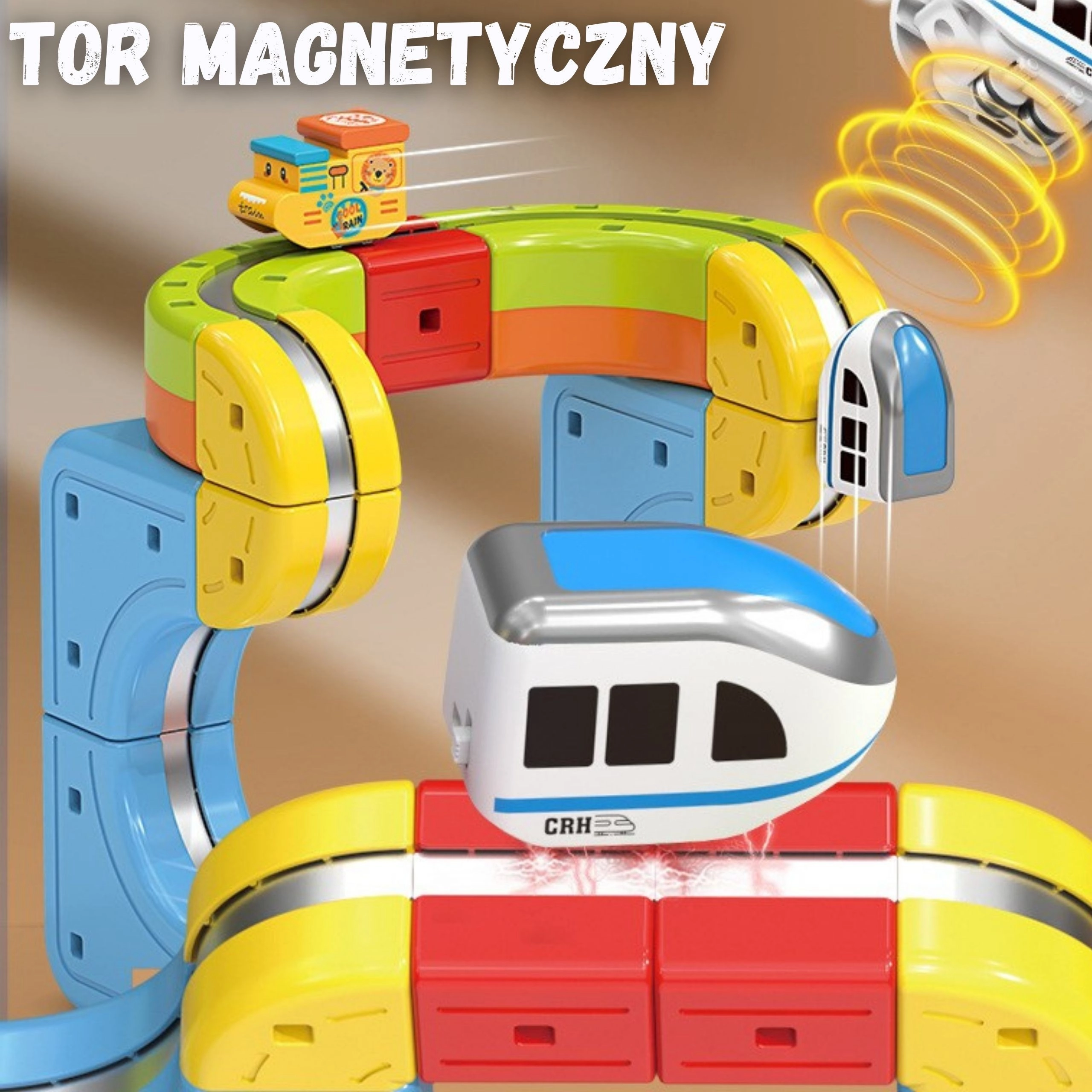 Het innovatieve magnetische systeem houdt het wagentje stevig op de baan, zodat het lussen, bruggen en steile beklimmingen aankan zonder te ontsporen.