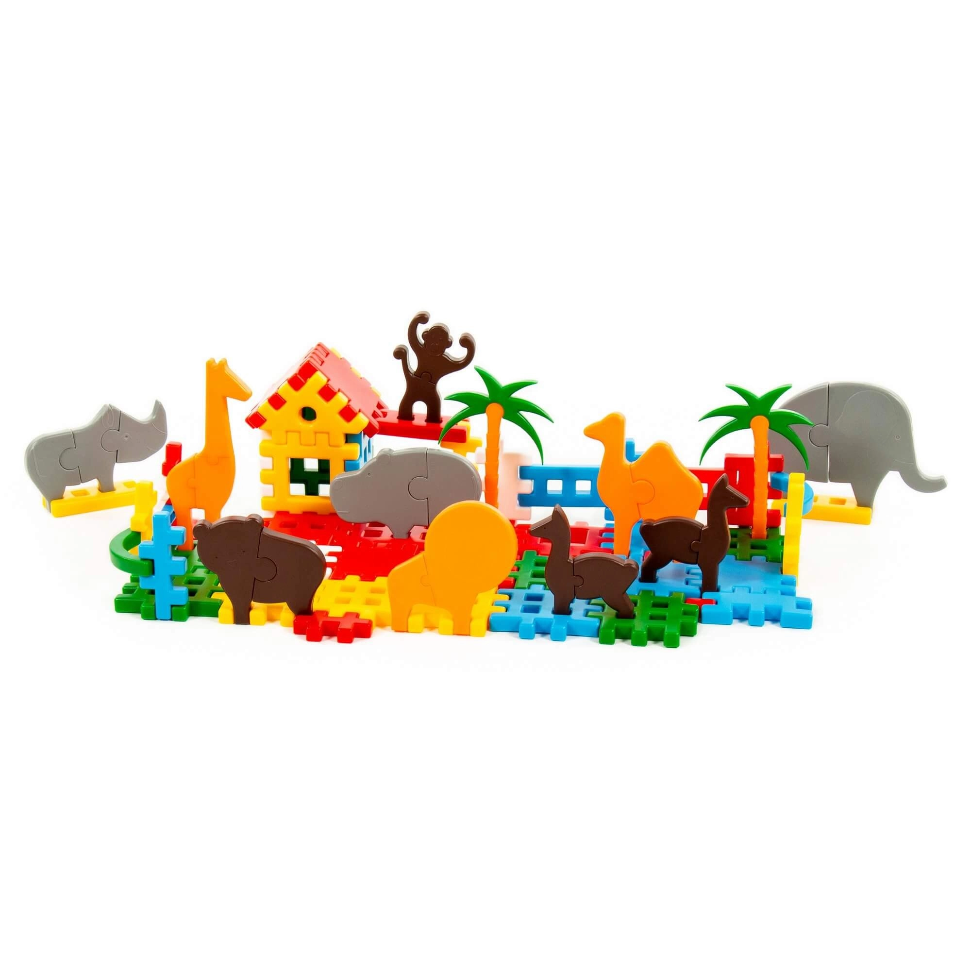 De Blok Zoo bouwset biedt kinderen eindeloze mogelijkheden om te bouwen en verhalen te verzinnen. Met de kleurrijke, onderling koppelbare onderdelen maak je eenvoudig een eigen dierentuin met dieren, verblijven en accessoires. Het eenvoudige koppelsysteem zorgt voor vloeiend speelplezier zonder frustratie en ontwikkelt spelenderwijs de vingervaardigheid.