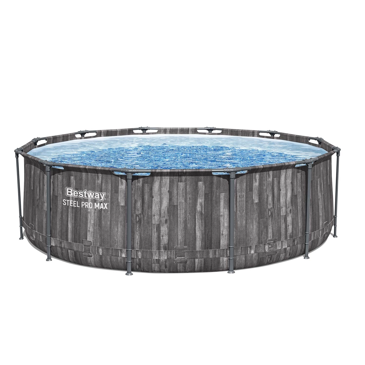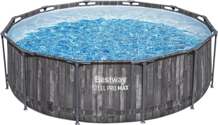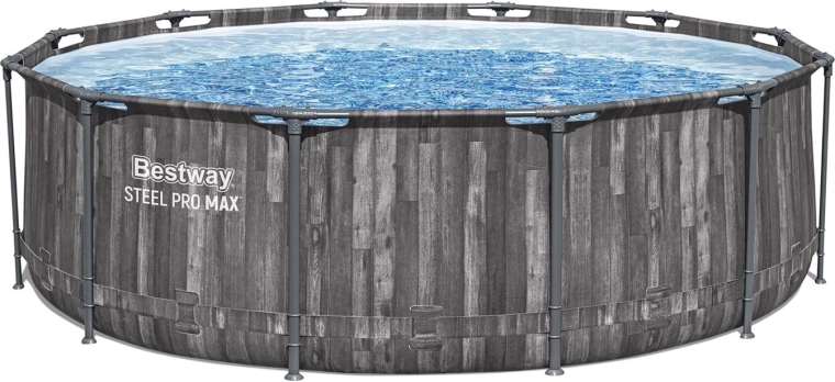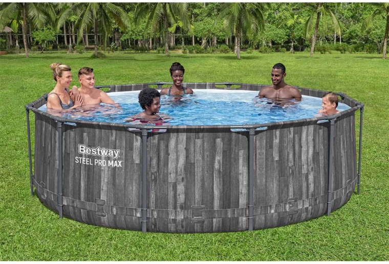 De stabiele Steel Pro MAX-constructie met anticorrosiebescherming en 3-laagse PVC-folie, versterkt met nylon gaas, garandeert een lange levensduur en veilig zwemmen.
