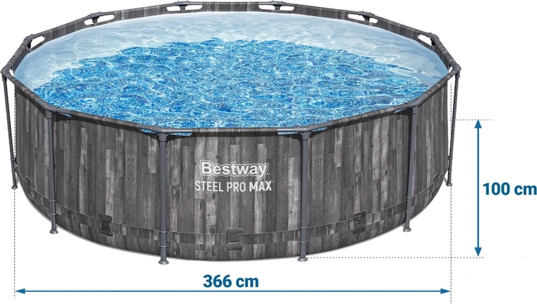 Het ronde opzetzwembad BESTWAY Steel Pro MAX met een diameter van 366 cm en een hoogte van 100 cm is de ideale keuze voor verfrissing met het gezin. Een robuust stalen frame met corrosiebescherming en een meerlaagse PVC-folie met nylonversterking zorgen voor een lange levensduur en stabiliteit. De binnenkant met mozaïekprint geeft het water een kristalblauwe uitstraling en maakt elke duik prettiger.