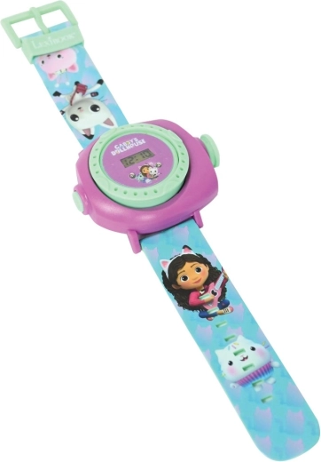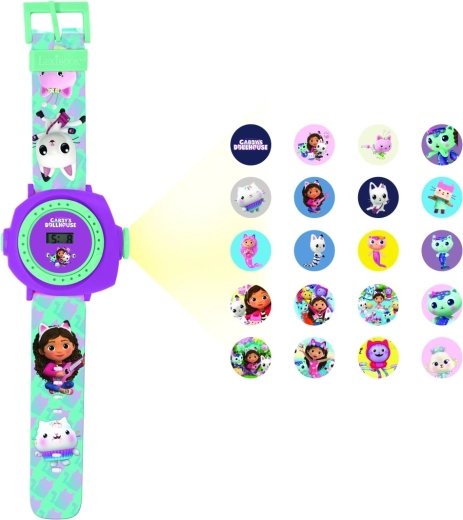 Altijd plezier en tijd bij de hand! De Lexibook kinderhorloge met Gabby’s Poppenhuis-thema combineert een digitale tijdweergave met het projecteren van tot 20 afbeeldingen van geliefde personages. Met een kleurrijk, stevig design, een comfortabele verstelbare band en direct klaar voor gebruik dankzij de meegeleverde batterijen.