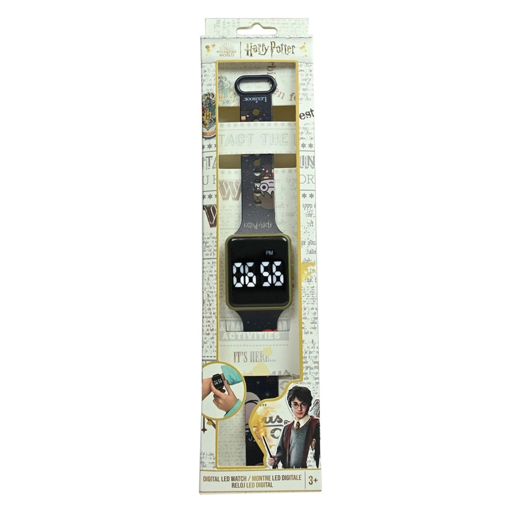 Stijlvolle digitale kinderhorloge met HARRY POTTER-thema, voorzien van een helder LED-display, schakelbaar tussen 12/24-uurs formaat, een praktische wekker en een comfortabele, verstelbare band. Ideaal voor jonge tovenaars vanaf 3 jaar – leren klokkijken wordt leuk.