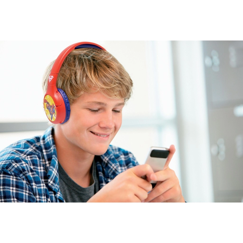 Zoek je een kinderhoofdtelefoon die veiligheid, comfort en een leuk design combineert? Deze kinder koptelefoon met SUPERMAN-motief biedt een volumelimiet tot 85 dB ter bescherming van het gehoor van kinderen, en twee gebruiksmodi – draadloos via Bluetooth of klassiek met kabel.