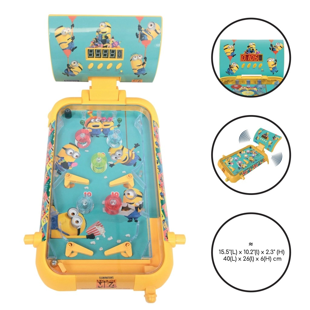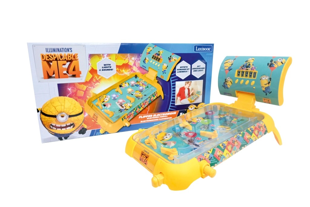 De elektronische tafelpinball Lexibook MINIONS combineert klassieke pinballactie met moderne elektronica. De gele behuizing, het kleurrijke speelveld en de iconische Minions-personages zorgen voor een aantrekkelijk design dat kinderen direct aanspreekt. Dankzij de compacte afmetingen is hij ideaal voor op de tafel in de kinderkamer en voor onderweg.