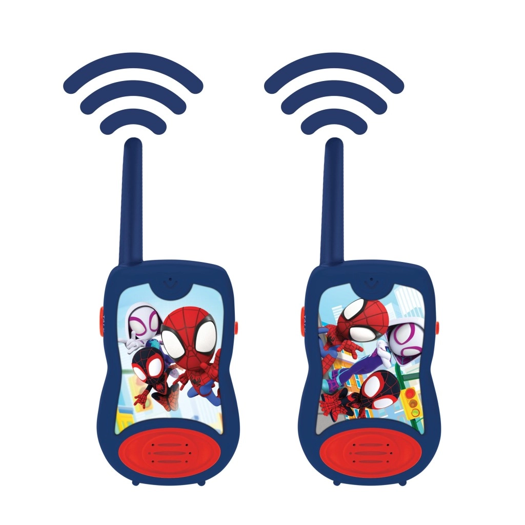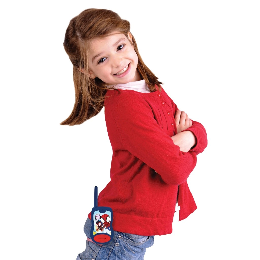 Ontdek plezier op afstand met de LEXIBOOK Spidey walkietalkies voor kinderen – een set van twee units met SPIDER-MAN-thema, met een bereik tot 200 m, eenvoudige bediening en een ergonomische vorm voor kleine handjes. Dankzij de praktische riemclip en de push-to-talk-knop kunnen kinderen veilig communiceren, zowel binnen als buiten.