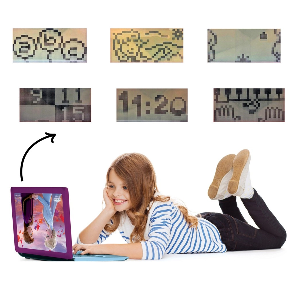 Het tweetalige toetsenbord, de echte muis en het overzichtelijke LCD‑scherm van 5,1 × 9,7 cm brengen kinderen het gebruik van een echte laptop bij.
