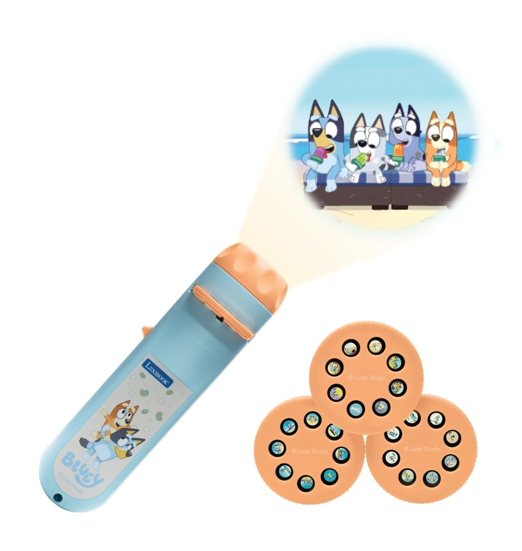 De BLUEY-verhalenprojector combineert plezier met het stimuleren van de verbeelding. Kinderen projecteren scènes op muur of plafond en creëren hun eigen vertellingen. Het blauwe design met serie-motieven en de ergonomische greep ondersteunen zelfstandig spel en gezamenlijke avondrituelen.