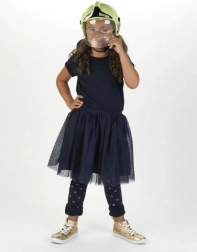 Het praktische vizier laat zich eenvoudig omhoog en omlaag doen, zodat kinderen tijdens het spelen vrij kunnen wisselen tussen “uitruk” en pauze.