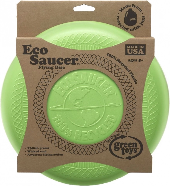 De lichte en duurzame vliegende schijf GREEN TOYS EcoSaucer maakt zowel kleine als grote spelers blij. Gemaakt van gerecycled plastic van melkflessen, vrij van BPA, PVC en ftalaten, met een stevig en glad oppervlak en dankzij het lage gewicht vliegt hij uitstekend en snel. Eenvoudig onderhoud – afwasbaar in de vaatwasser.