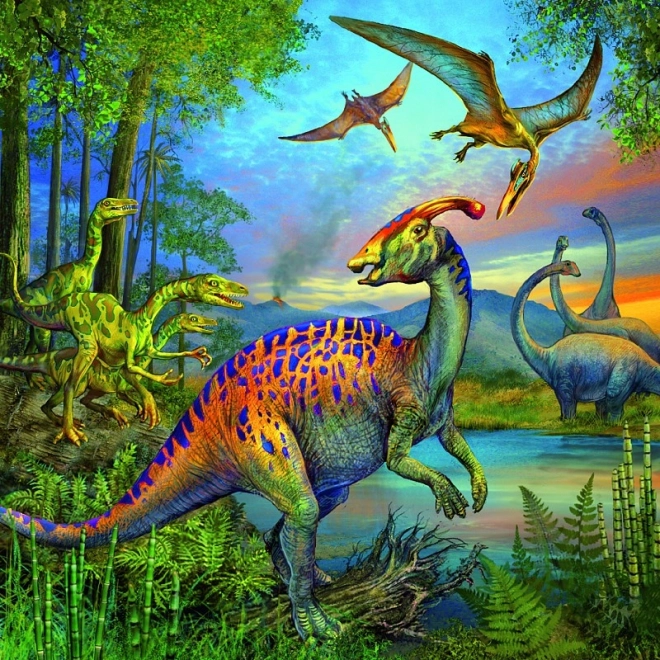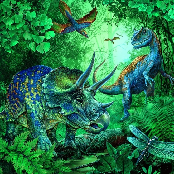 De set bevat 3 losse puzzels van elk 49 stukjes met gevarieerde dinosaurusmotieven – meer plezier en uitdaging voor kinderen vanaf 5 jaar.